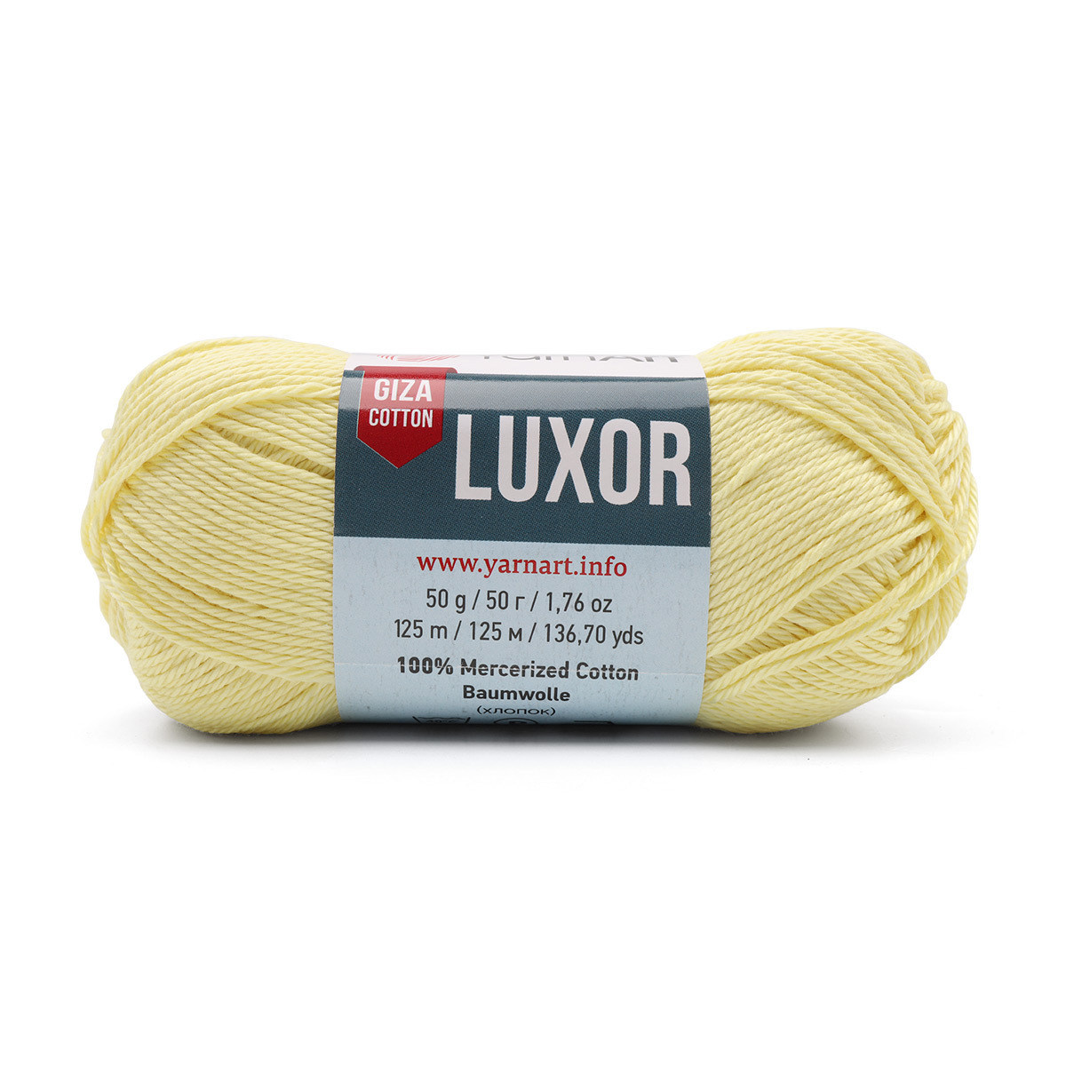 Luxor' от YarnArt – летняя пряжа из 100% мерсеризованного хлопка, который отличается гладкостью и небольшим блеском. Нить очень ровная, аккуратной крутки, поэтому из нее получаются прекрасные ажурные узоры. Изделия из этой пряжи не раздражают кожу, не перегревают, позволяют коже дышать, впитывают влагу. Пряжа 'Luxor' подходит для легких топов, кардиганов, беретов, а также для вязания мягких игрушек амигуруми. В ассортименте гармонично подобранные, яркие и нежные цвета и оттенки – выбирайте те, которые вас вдохновляют! Рекомендуемые спицы / крючок №3,5. Толщина нити: средняя. Размер: 50 г / 125 м. Состав: 100% мерсеризованного хлопка. Примечание Оттенки пряжи могут незначительно отличаться от представленных на фотографиях. Это зависит от партии товара, настроек экрана и освещения.