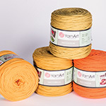 YarnАrt 'Maccheroni' – трикотажная пряжа в виде плоского шнура. Такая пряжа позволяет вязать вещи с оригинальной фактурой, а также подходит для плетения. Из толстой пряжи-шнура получаются замечательные коврики, пледы, сумочки. Сочетание разных материалов – секрет успеха. Натуральный хлопок из переработанного сырья делает пряжу приятной на ощупь, а полиэстер придает износостойкость готовым вещам. В ассортименте пряжи 'Maccheroni' – тщательно подобранные сдержанные цвета, которые прекрасно сочетаются между собой. В пределах одной упаковки оттенки пряжи могут отличаться. Проявите фантазию, и у вас получится оригинальный проект. Рекомендуемые спицы №12 / крючок №15.