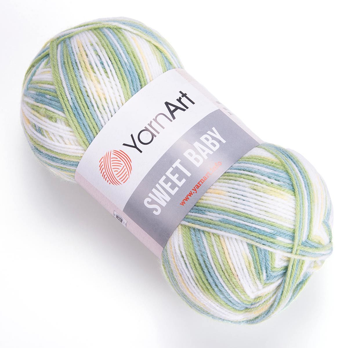 Пряжа 'Sweet Baby' от YarnArt – тонкая детская пряжа из 100% акрила. Мягкое акриловое волокно приятно к телу, не вызывает аллергии и раздражения нежной детской кожи. Вещи из акрила сохраняют форму после стирки и ношения, не требуют специальных моющих средств. В ассортименте различные секционные расцветки – яркие и нежные, модные и классические. Секционное крашение позволяет создавать полотно с контрастным узором, не ввязывая новую нить и не подбирая цвета вручную. Состав: 100% акрил. Рекомендуемые спицы / крючок №4.