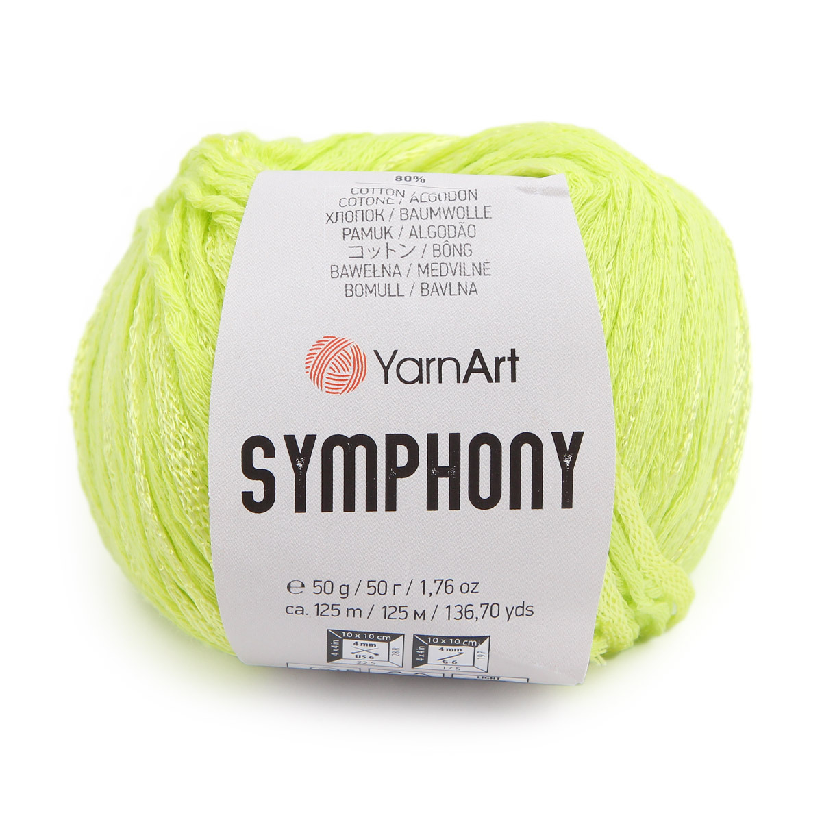 Symphony – необычная фантазийная пряжа от YarnArt. Она позволяет получить удивительный результат без особых усилий. Достаточно выбрать лицевую гладь или платочную вязку, чтобы получить полотно с ажурными просветами. Нить в виде шнура достаточно прочная, поэтому при правильном уходе вещи не будут вытягиваться. Пряжа Symphony изготовлена вискозы и хлопка – эти натуральные волокна комфортны даже для чувствительной кожи и как нельзя лучше подходят для летнего сезона. Хлопок обеспечивает гигроскопичность – не перегревает, пропускает влагу и обеспечивает нормальный воздухообмен. Вискоза придает гладкость, небольшой блеск и создает приятное ощущение прохлады. Ассортимент цветов пряжи тщательно продуман, он включает нежную однотонную пряжу, а также пестрые секционные расцветки для тех, кто любит контрастные сочетания. Рекомендуемые спицы / крючок №4. Состав: 80% хлопка, 20% вискозы. Толщина нити: тонкая. Размер мотка: 50 г / 125 м. Примечание Оттенки пряжи могут незначительно отличаться от представленных на фотографиях. Это зависит от партии товара, настроек экрана и освещения.