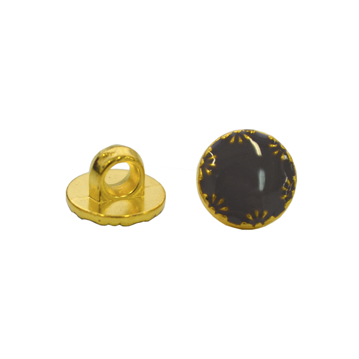 Декоративная блузочная пуговица с гладкой цветной поверхностью и легкой золотой окантовкой. Пуговица выполнена в классических цветах, идеально подойдет как для офисного женского гардероба, так и для элегантного платья в стиле винтаж. Нежная романтичная блуза будет намного интереснее смотреться с данной моделью пуговиц, что гарантирует увеличение роста продаж вашего товара. Также пуговица идеально дополнит связанное вашими руками изделие и добавит ему индивидуальности. Пуговица из пластика под металл на ножке. Размер: диаметр 18L (11,43 мм). Цвета: в ассортименте.