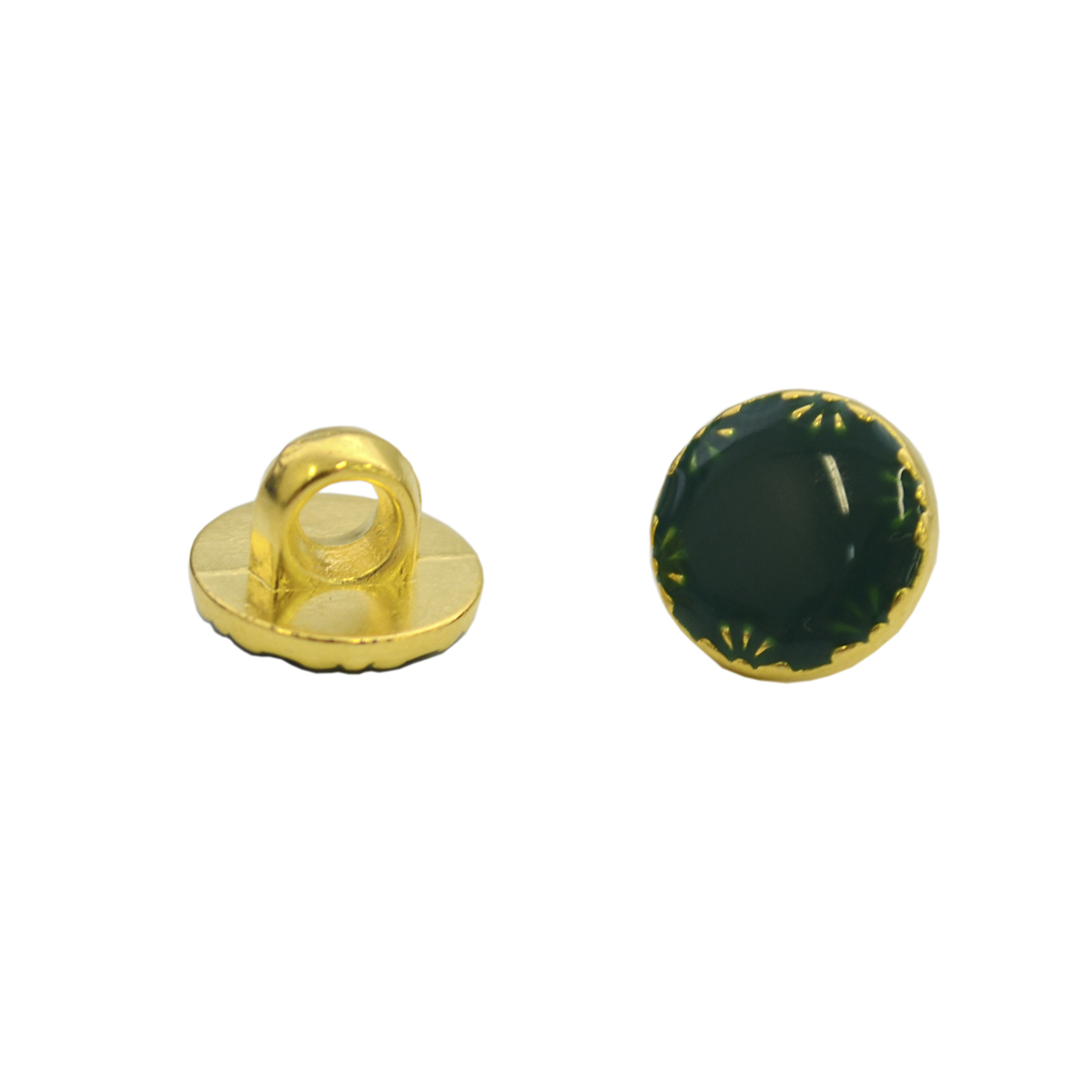 Декоративная блузочная пуговица с гладкой цветной поверхностью и легкой золотой окантовкой. Пуговица выполнена в классических цветах, идеально подойдет как для офисного женского гардероба, так и для элегантного платья в стиле винтаж. Нежная романтичная блуза будет намного интереснее смотреться с данной моделью пуговиц, что гарантирует увеличение роста продаж вашего товара. Также пуговица идеально дополнит связанное вашими руками изделие и добавит ему индивидуальности. Пуговица из пластика под металл на ножке. Размер: диаметр 18L (11,43 мм). Цвета: в ассортименте.