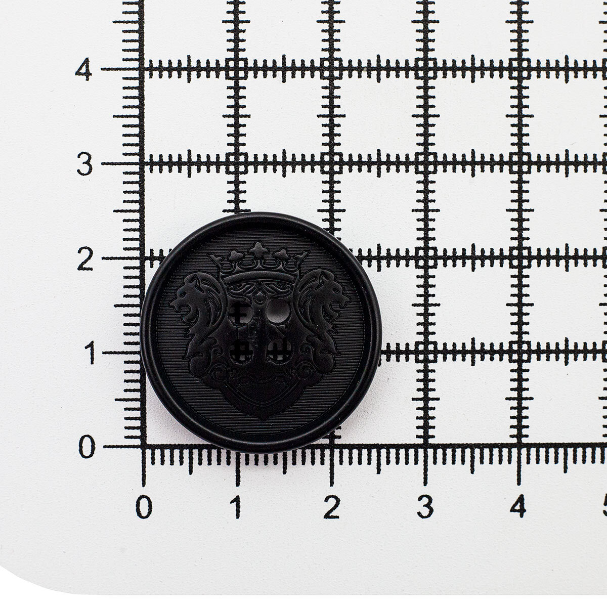 Декоративная костюмная пуговица, выполнена в круглой форме с рифленой поверхностью, на которой изображены геральдические элементы и львы, гербовая символика. Прекрасный вариант пуговицы, для использования в винтажных коллекциях: пальто, тренчи, пиджаки, жакеты, жилеты, она добавит благородности и грациозности вашему образу. Также можно использовать на трикотажные и вязаные изделия. Создавайте свои уникальные изделия с нашими пуговицами. Обратите внимание на широкий размерный ряд. Выполнена из пластикового материала на прокол с четырьмя отверстиями для пришивания. Размер: диаметр 40L (25,41 мм). Цвета: черный.