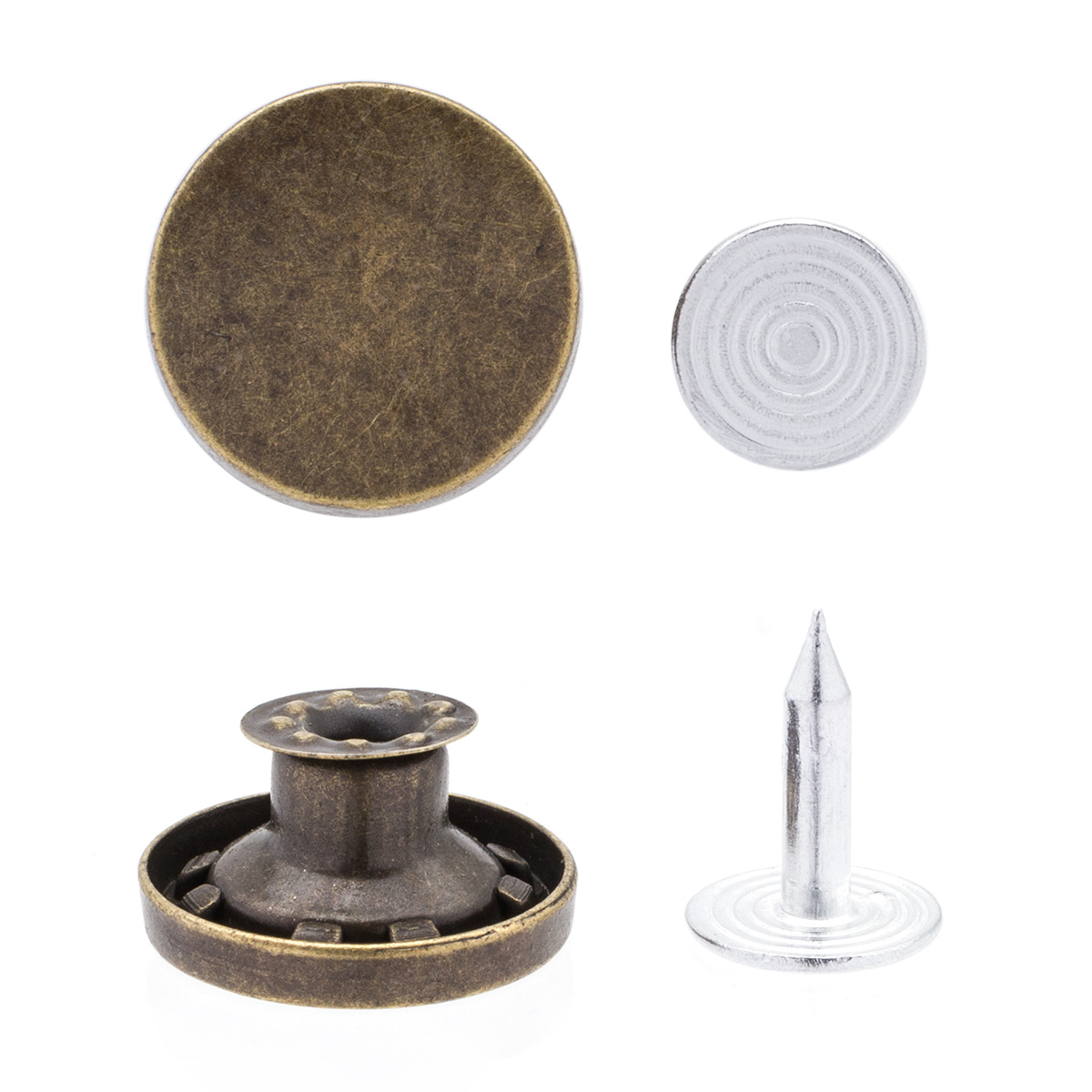 Пуговицы джинсовые ⌀15 мм, ломанная ножка, 50 шт, бронза, DJ07