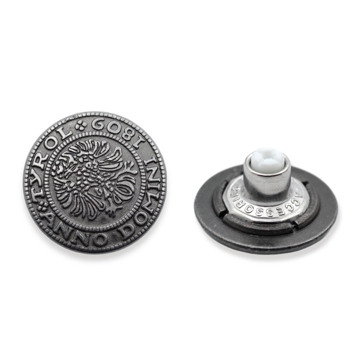 Пуговица джинсовая на фиксированной ножке 20мм Герб цв.металл, темное серебро ГР, 64345, 20 шт