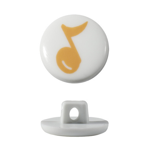 Пуговица детская на ножке с нанесенным рисунком в виде ноты. Пуговица изготовлена из пластика, отвечающего современным требованиям стандарта качества, покрытие застёжки долговечное, износостойкое, не содержит вредных веществ. Пуговицы широко используются в швейной, текстильно-галантерейной и обувной промышленности. В наше время рукодельницы используют декоративные пуговицы не только по назначению, а и в таких техниках как скрапбукинг, декорирование деревянных заготовок, изготовление картин, различных поделок.