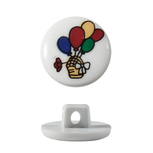 Пуговица детская на ножке с нанесенным рисунком в виде шариков. Пуговица изготовлена из пластика, отвечающего современным требованиям стандарта качества, покрытие застёжки долговечное, износостойкое, не содержит вредных веществ. Пуговицы широко используются в швейной, текстильно-галантерейной и обувной промышленности. В наше время рукодельницы используют декоративные пуговицы не только по назначению, а и в таких техниках как скрапбукинг, декорирование деревянных заготовок, изготовление картин, различных поделок.