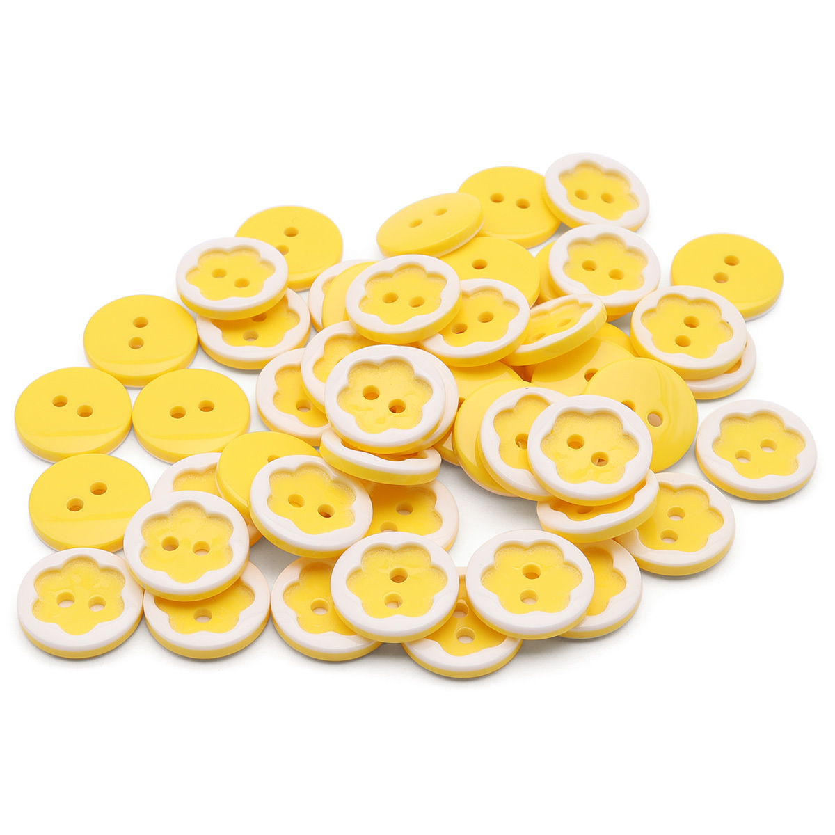 Пуговицы детские Цветочек 24L (15мм), пластик (бело-желтый), 50 шт, Б70Л15(3.02-1023-15)