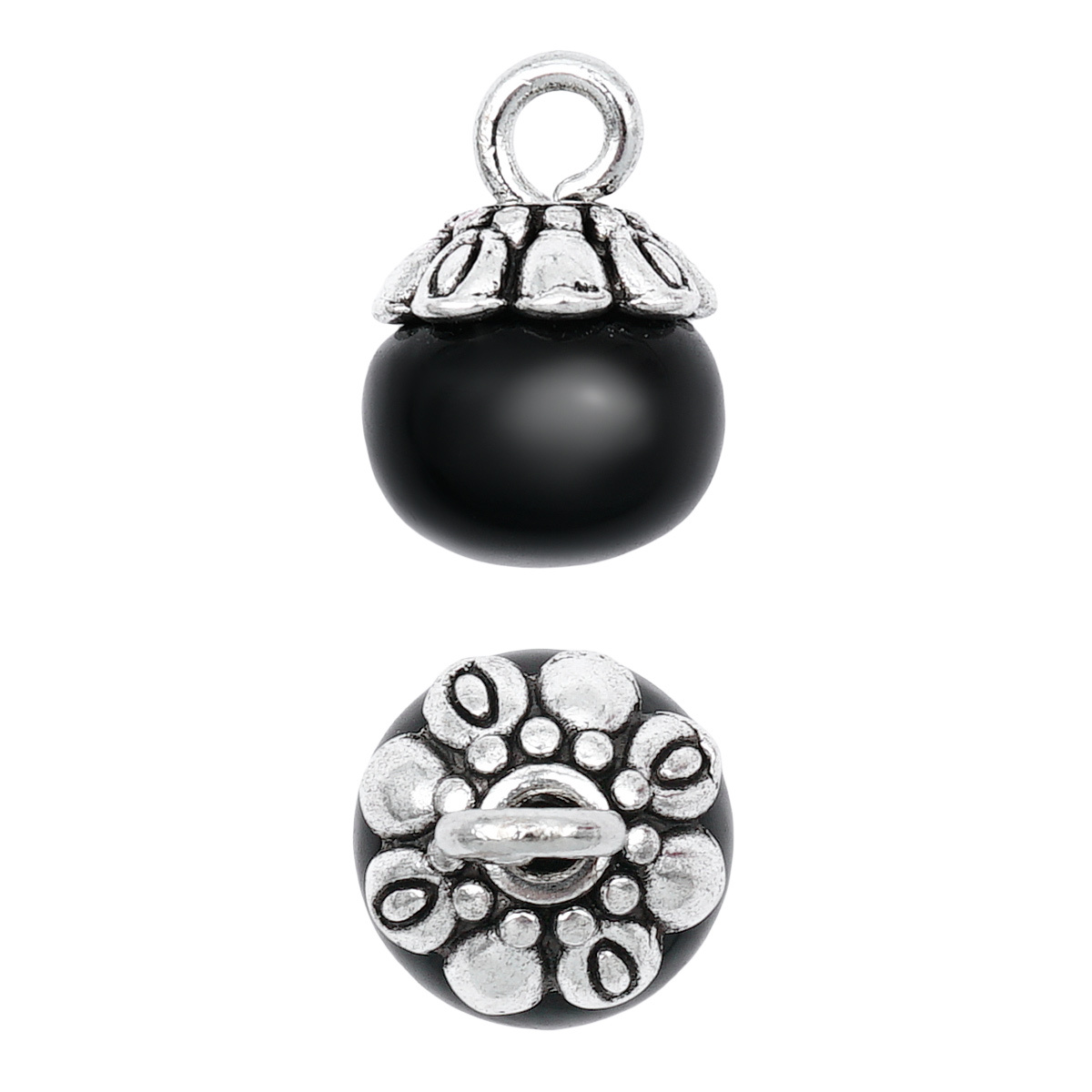Пуговица-жемчужина на ножке ⌀10 мм, пластик, S.Black, серебристо-черный, GE06, 36 шт