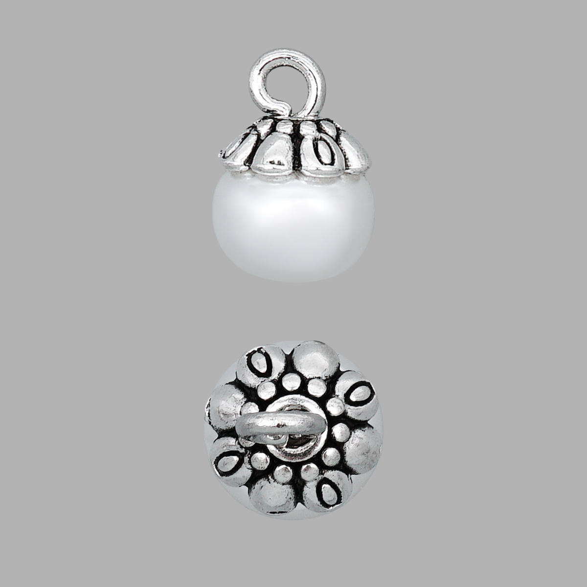 Пуговица-жемчужина на ножке ⌀10 мм, пластик, S.White, серебристо-белый, GE06, 36 шт