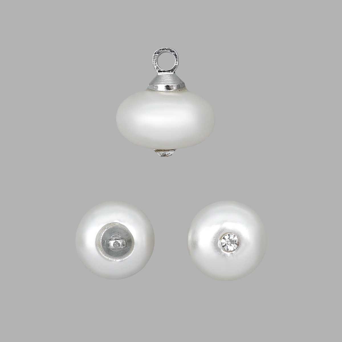 Пуговица-жемчужина на ножке со стразом 10 мм, Milk, молочный, пластик, GE20, 36 шт