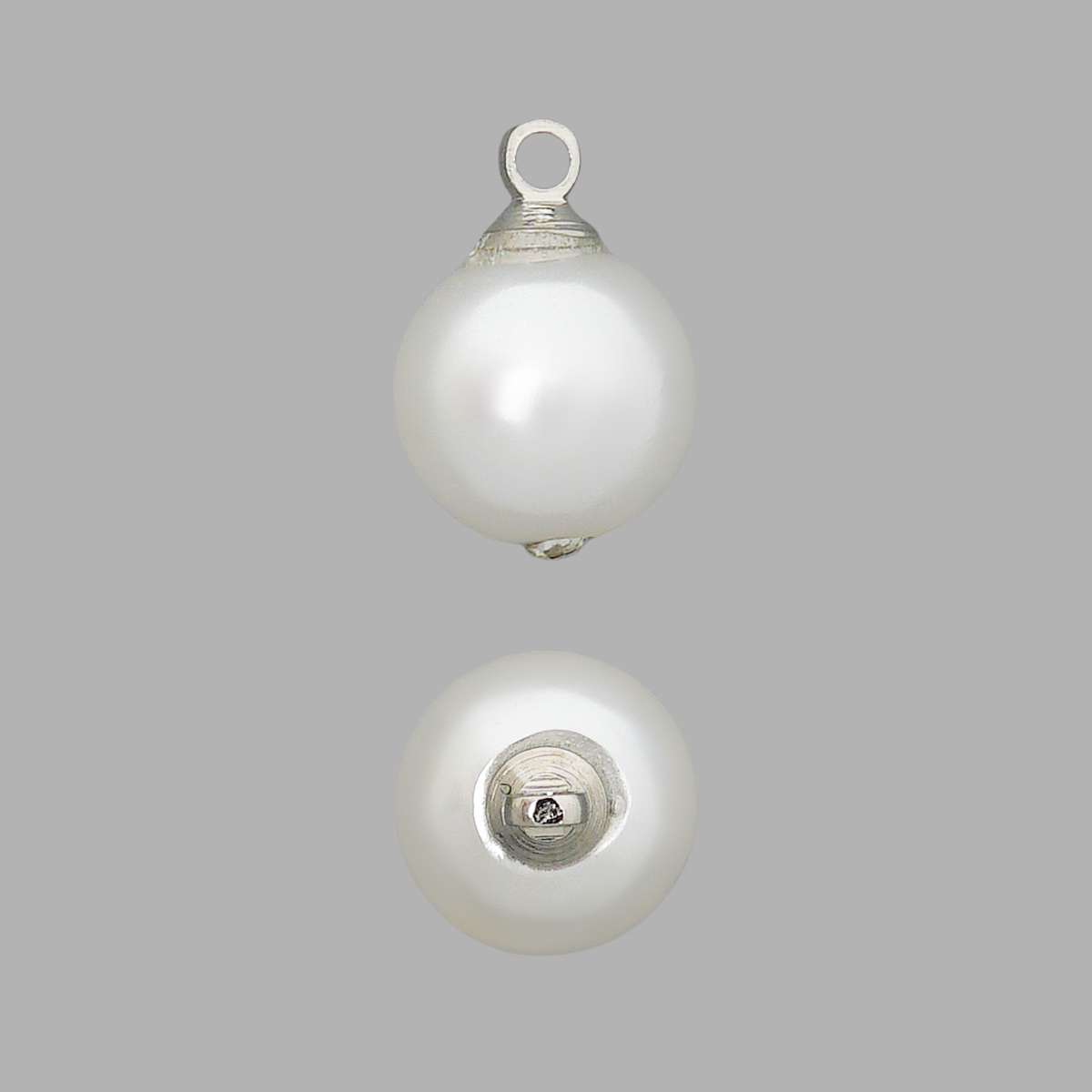 Пуговица-жемчужина на ножке со стразом 10 мм, S.White, серебристо-белый, пластик, GE28, 36 шт