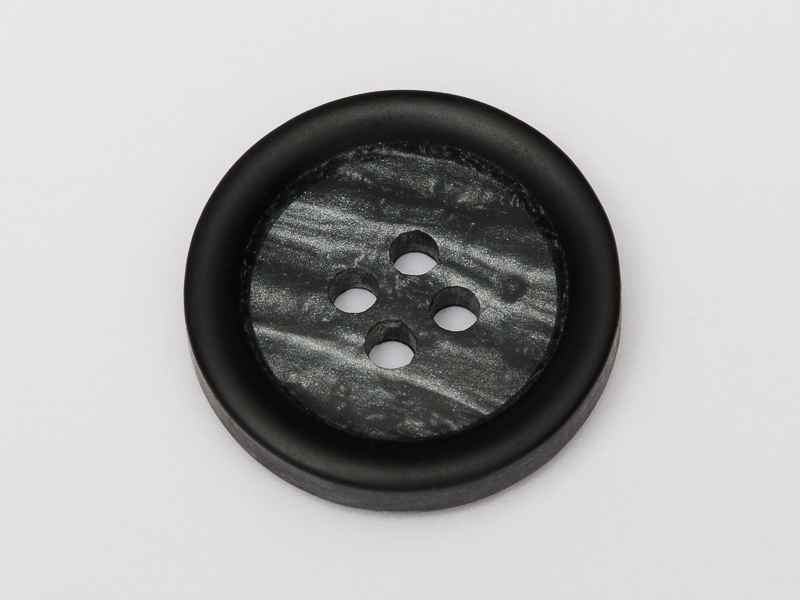 Пуговица размера 32L (20мм, с более высокой точностью - 20,32 мм.)Основная пуговица для пиджаков, жилеток, жакетов, некоторых плащей и пальто.Подойдёт и для многих других изделий. *Цвет №: 556, серо-чёрный матовый. Бортик однотонный чёрный цвета. Градиент в центральной части - изменение цвета от тёмно-серого до серого. Такая же игра оттенков и на ребре пуговицы. Поверхность матовая, и в целом- тёмная. Светлые области «сухие», не блестят, не бликуют, однако благородно оживляют пуговицу. Которая подойдёт и к однотонным тканям. И будет уместна с элементами тёмных оттенков материалов.Реверс пуговицы – градиент тёмно-серых оттенков.