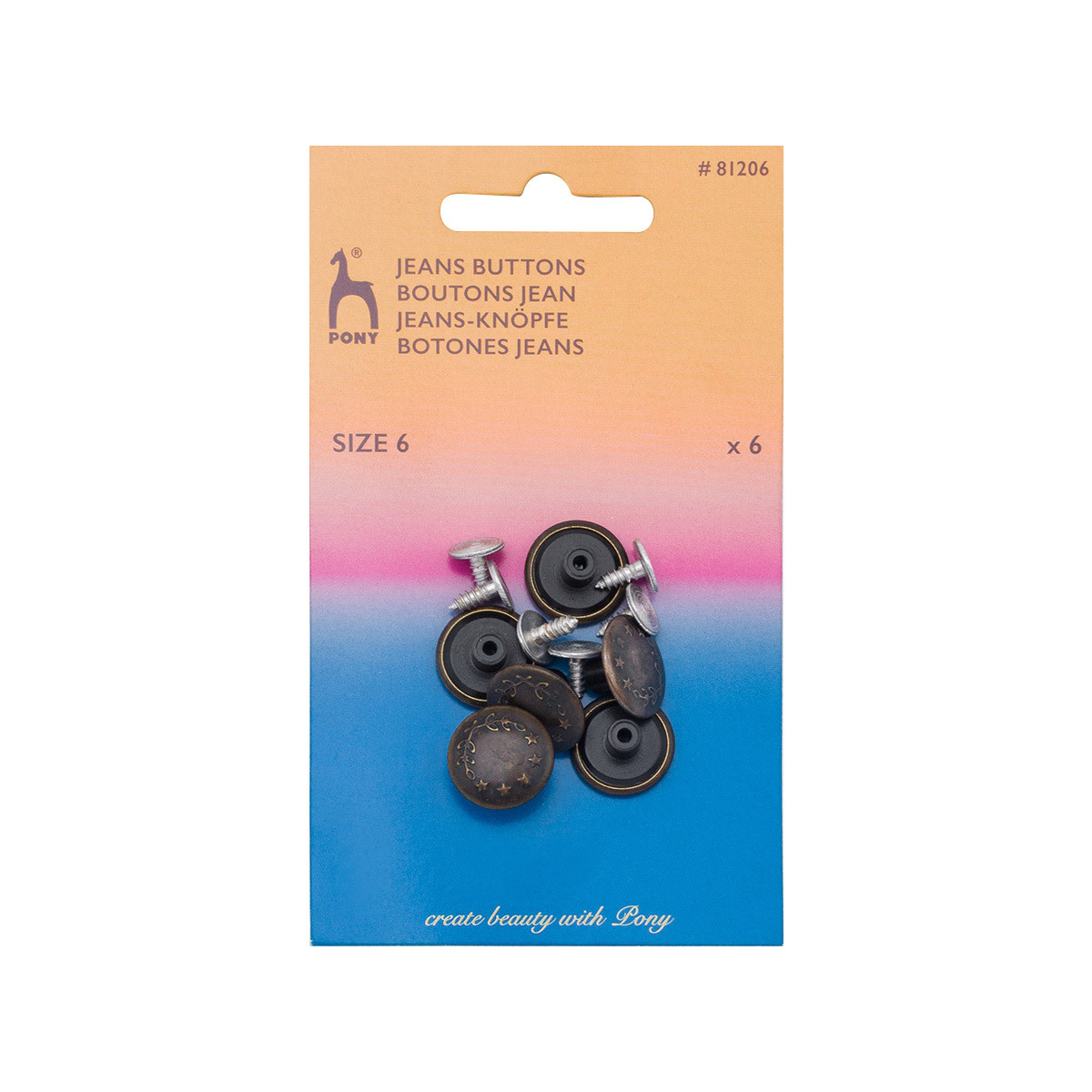 Пуговицы джинсовые ⌀17 мм, Лавровый венок, материал верха: латунь, т.латунь, 6 шт, Pony, 81206