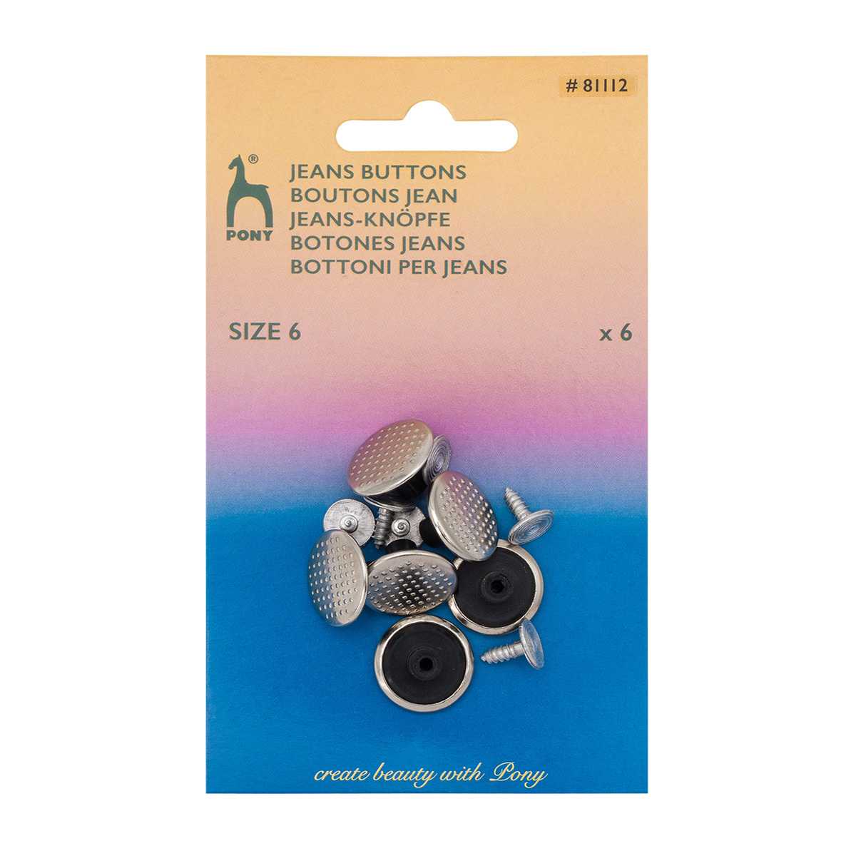 Пуговицы джинсовые ⌀17 мм, Точки, материал верха: сталь, т.никель, 6 шт, Pony, 81112