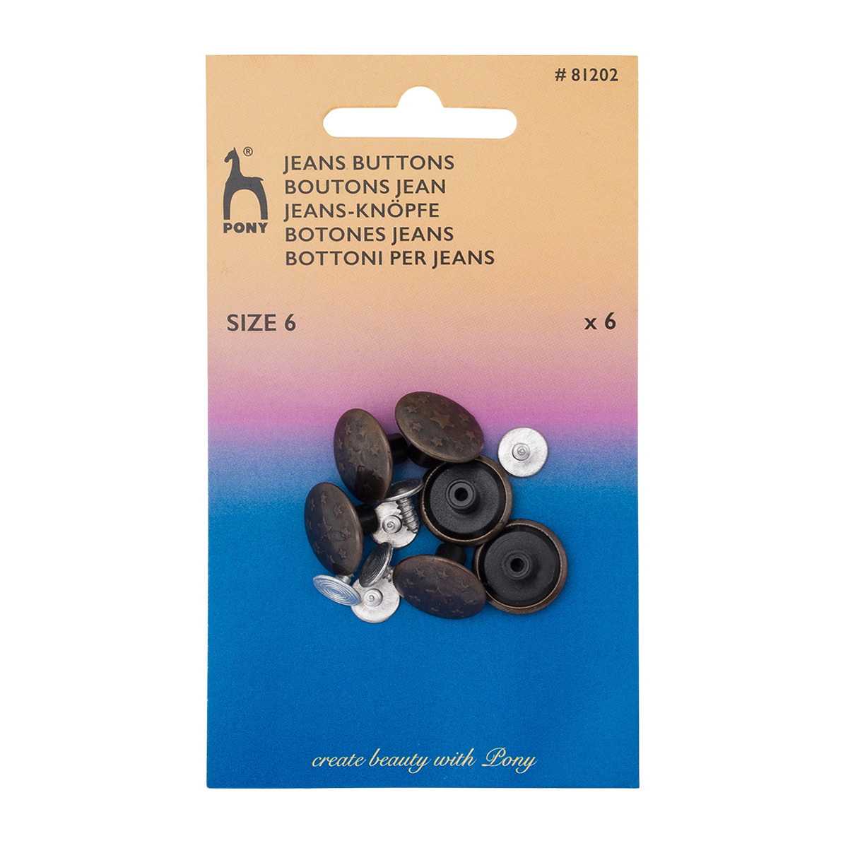 Пуговицы джинсовые ⌀17 мм, Звезды, материал верха: латунь, т.латунь, 6 шт, Pony, 81202