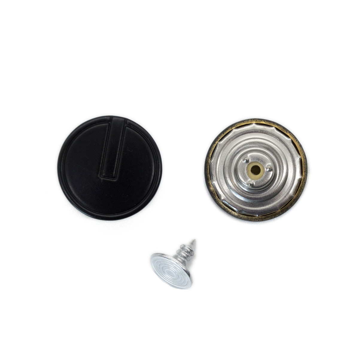 Джинсовые пуговицы состоят из двух частей: шляпки с нанесенным на нее фактурным рисунком и гвоздя с круговой надсечкой. Такие пуговицы подходят изделий из джинсовой ткани, парусины и других материалов саржевого переплетения. Используется при пошиве одежды, а также сумок, чехлов, рюкзаков. Чтобы установить этот элемент, потребуется ручной пресс, киянка или молоток. Пуговица выполнена из металла высокого качества, выдерживает стирку, химическую чистку, другие стандартные нагрузки. Размер: диаметр 18 мм. Цвет: черный.