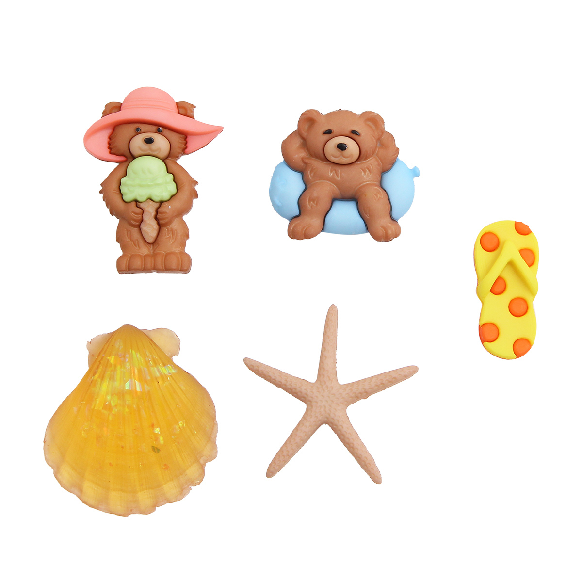 Украшения пуговицы декоративные фигурки Пляжные мишки пластик, 7 штук, Dress It Up