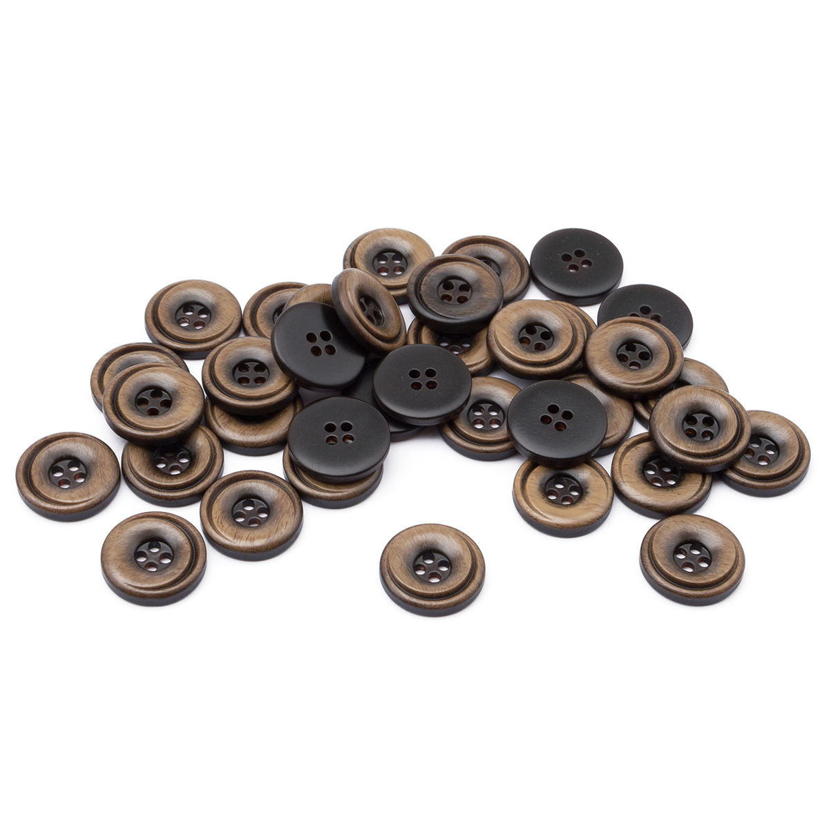 Пуговицы 4 прокола 24L=15 мм, пластик (имитация дерева), col.B темно-коричневый, 36 шт, CN2821