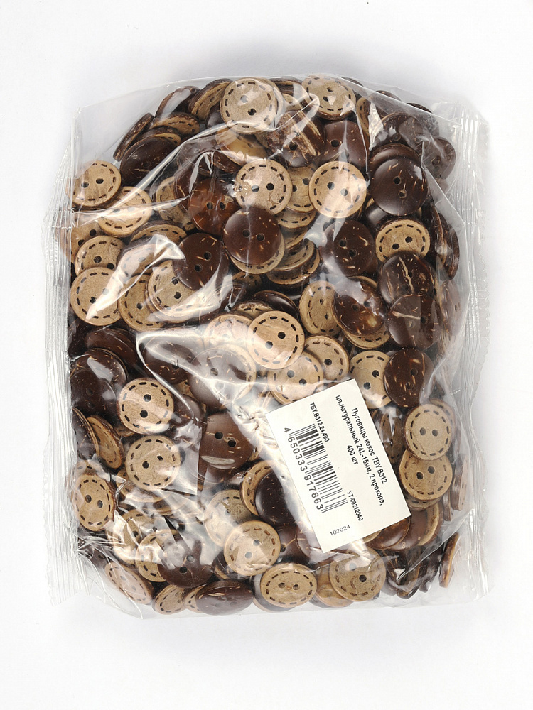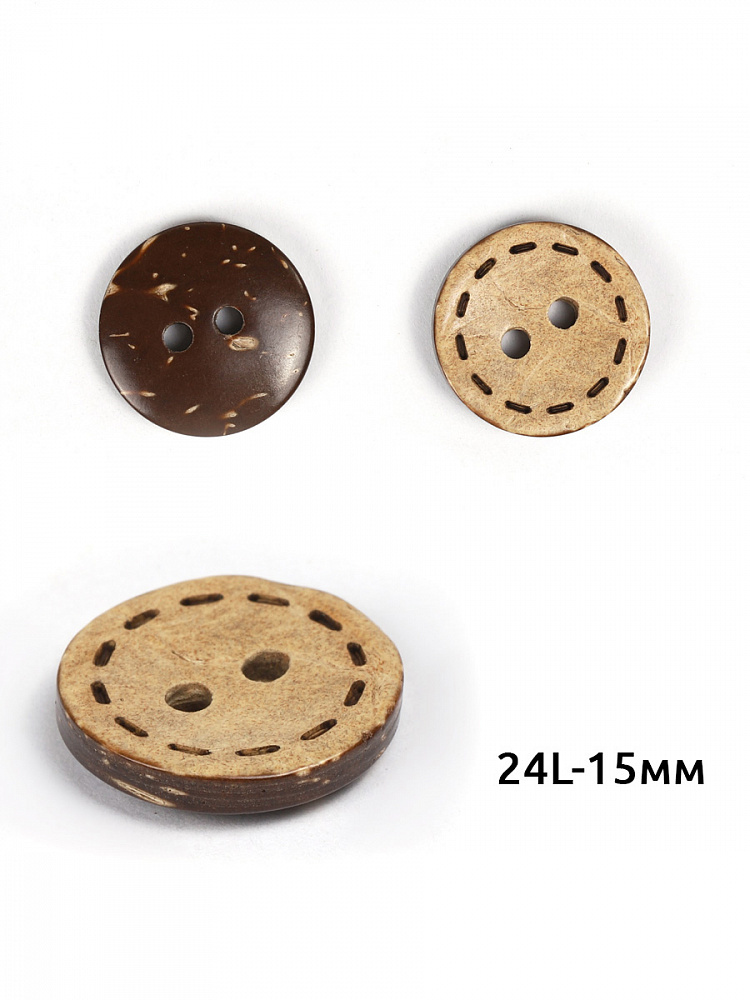 Пуговица кокос 2 прокола 24L=15 мм, TBY.B312 цв.натуральный, 400 шт