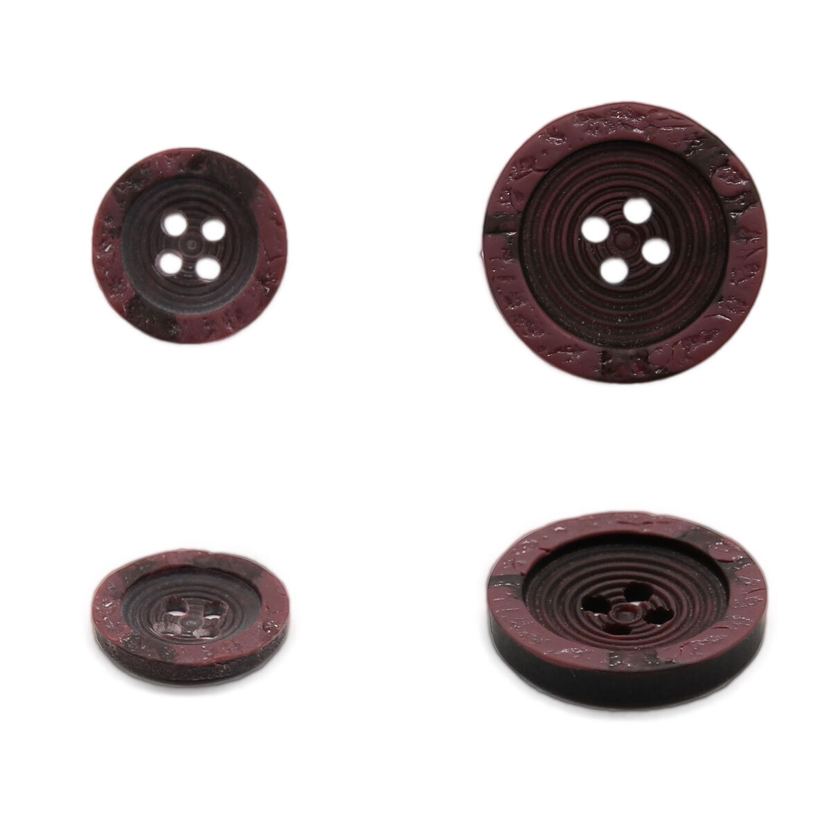 Набор костюмных пуговиц – идеальный вариант для пиджаков, легких летних плащей или пальто. Данная модель на прокол с четырьмя отверстиями для пришивания имеет нейтральный дизайн и подходит для мужской одежды. В наборе пуговицы диаметром 15 мм и 21 мм: чередуйте пуговицы разных размеров, комбинируйте разные цвета и создавайте дизайнерские модели. Также из пуговиц можно создавать различные поделки: – оформлять пуговицами заготовки из фанеры, керамики, стекла и других материалов; – декорировать открытки, обложки, фоторамки в технике скрапбукинга; – создавать вышитые декоративные панно. Пуговицы выполнены из пластика. В наборе: пуговицы диаметром 15 мм (12 шт.), 21 мм (12 шт.). Всего 24 шт. Цвет набора: бордовый.