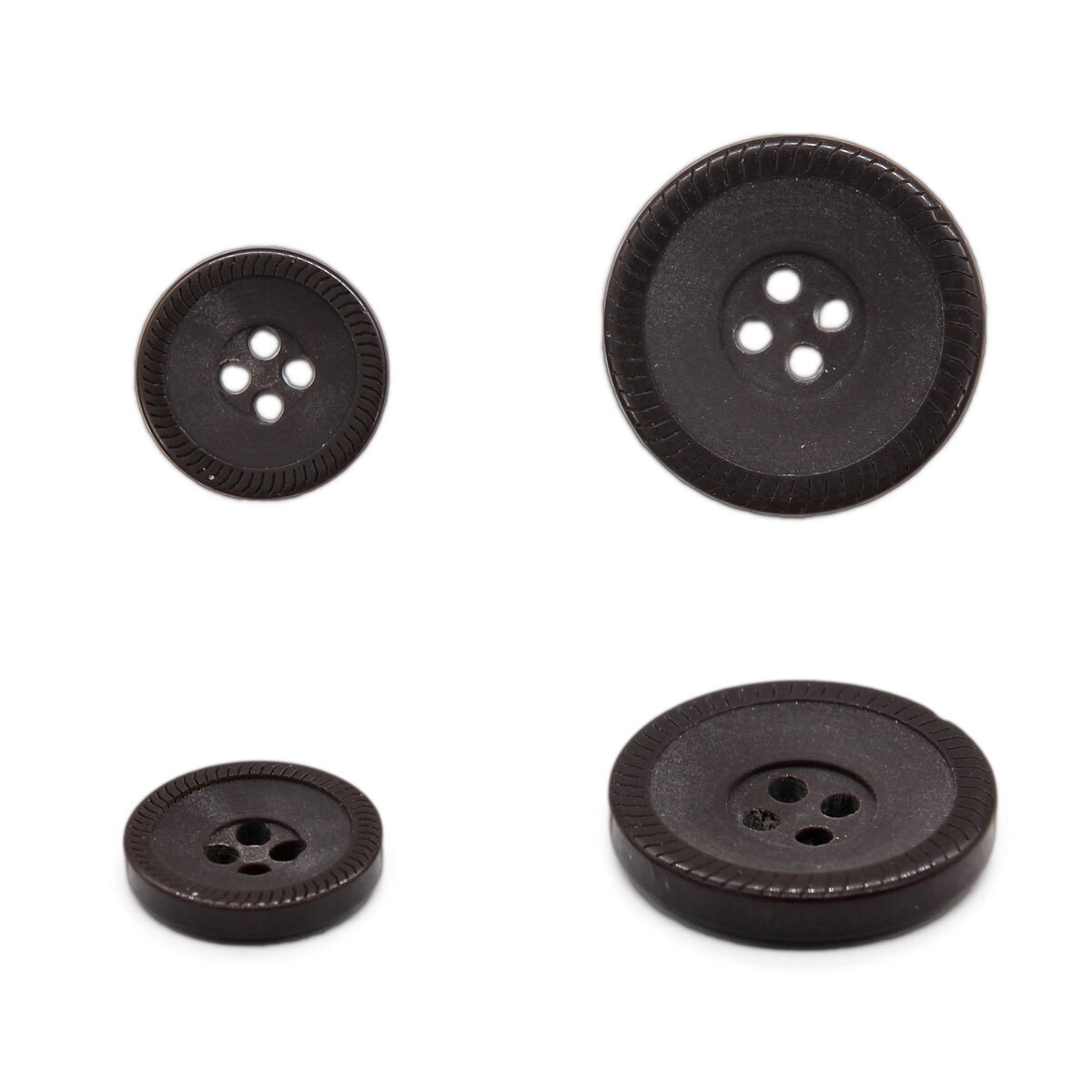 Набор костюмных пуговиц – идеальный вариант для пиджаков, легких летних плащей или пальто. Данная модель на прокол с четырьмя отверстиями для пришивания имеет нейтральный дизайн и подходит для мужской одежды. В наборе пуговицы диаметром 15 мм и 22 мм: чередуйте пуговицы разных размеров, комбинируйте разные цвета и создавайте дизайнерские модели. Также из пуговиц можно создавать различные поделки: – оформлять пуговицами заготовки из фанеры, керамики, стекла и других материалов; – декорировать открытки, обложки, фоторамки в технике скрапбукинга; – создавать вышитые декоративные панно. Пуговицы выполнены из пластика. В наборе: пуговицы диаметром 15 мм (12 шт.), 22 мм (12 шт.). Всего 24 шт. Цвет набора: коричневый.