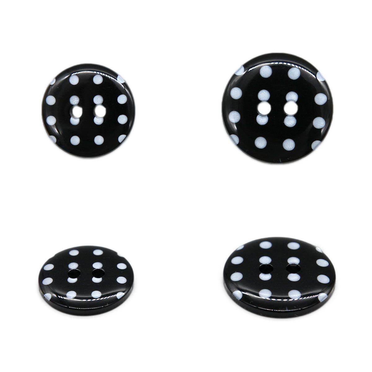 Набор костюмных пуговиц с двумя отверстиями для пришивания – идеальный вариант для блейзеров, деловой одежды, легких летних плащей или пальто. Данная модель с рисунком 'горошек' прекрасно подойдет для женской и детской одежды. В наборе пуговицы диаметром 15 мм и 18 мм: чередуйте пуговицы разных размеров, комбинируйте разные цвета и создавайте дизайнерские модели. Также из пуговиц можно создавать различные поделки: – оформлять пуговицами заготовки из фанеры, керамики, стекла и других материалов; – декорировать открытки, обложки, фоторамки в технике скрапбукинга; – создавать вышитые декоративные панно. Пуговицы выполнены из пластика. В наборе: пуговицы диаметром 15 мм (12 шт.), 18 мм (12 шт.). Всего 24 шт. Цвет набора: черный.