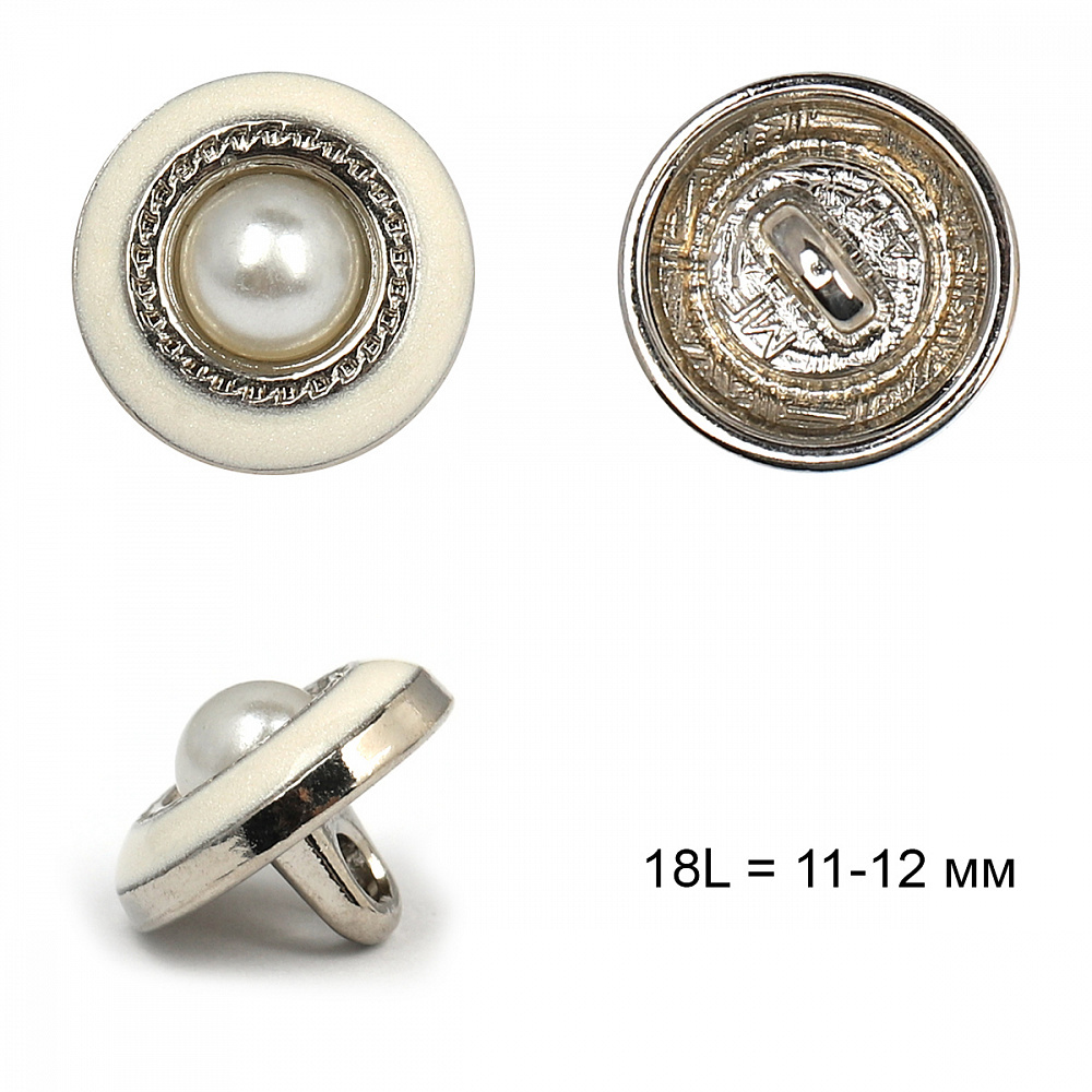Пуговицы на ножке металл 18L = 11-12 мм, L-MF4/6, цв.белый с серебром, на ножке, 36 шт