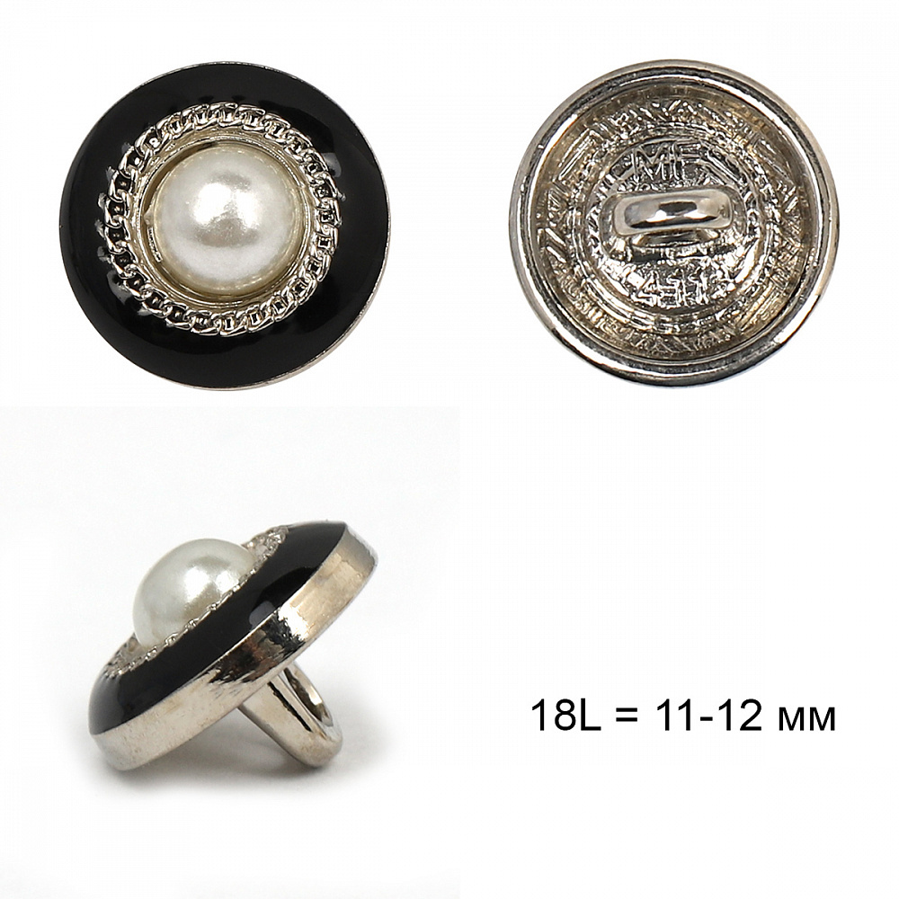 Пуговицы на ножке металл 18L = 11-12 мм, L-MF4/7, цв.черный с серебром, на ножке, 36 шт