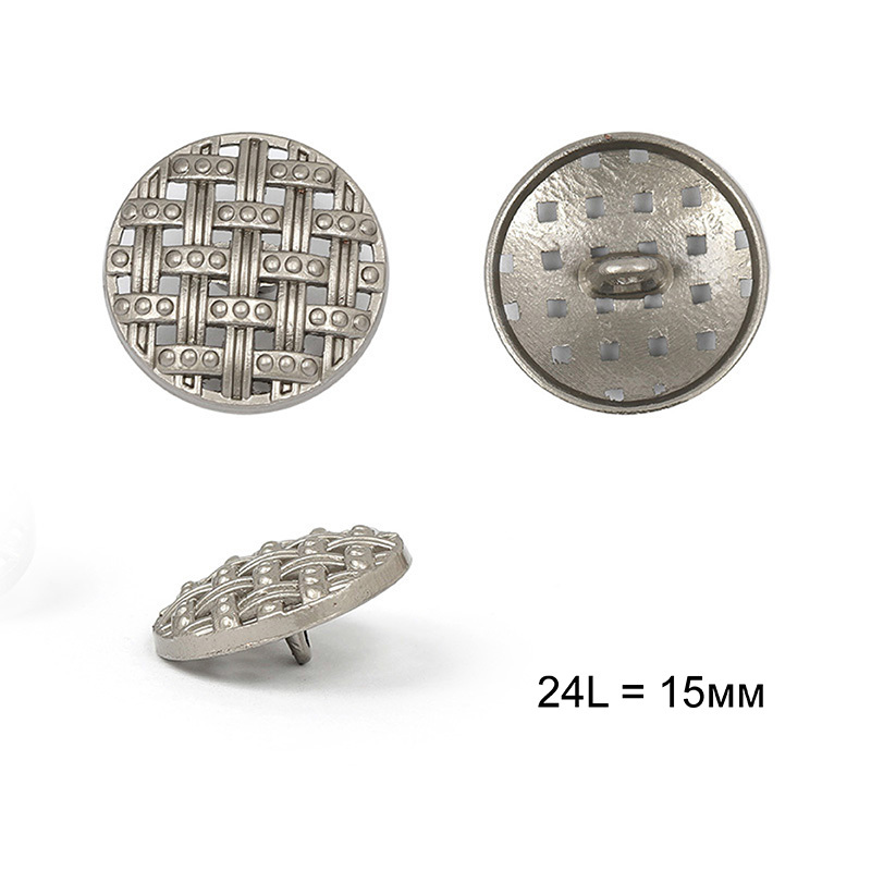 Пуговицы на ножке металл С-ME325, цв.серебро 24L-15мм, 24 шт