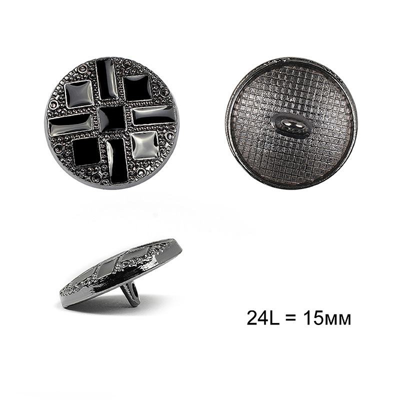Пуговицы на ножке металл С-ME329 цв.т.никель 24L-15мм, 24 шт