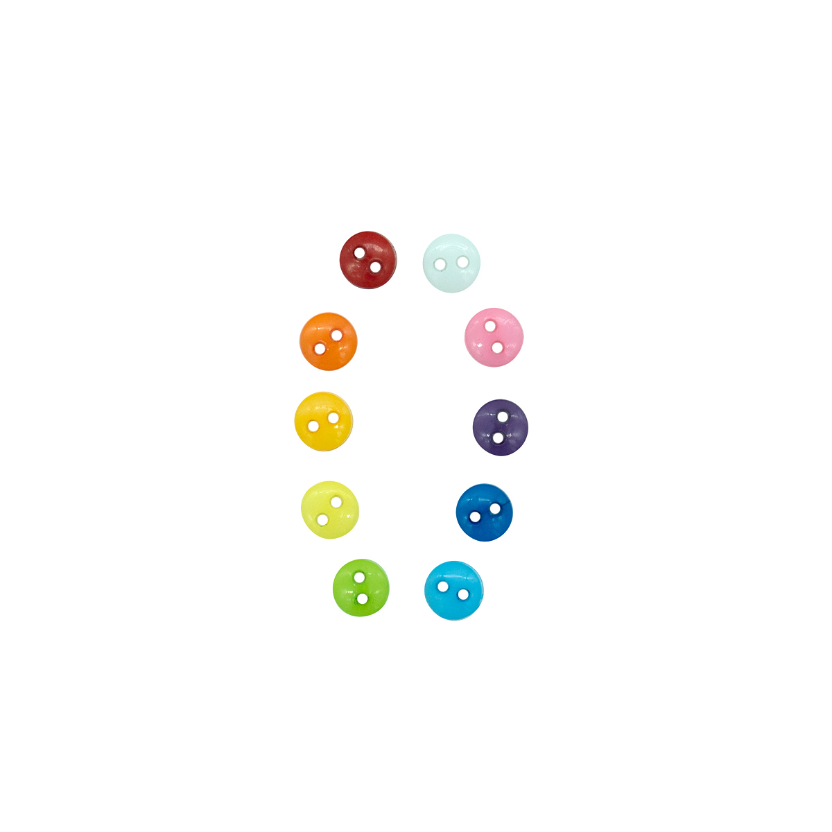 Разноцветные мини-пуговицы – универсальный материал для рукоделия. Используйте их для любых ваших творческих проектов: – создайте застежку на одежде для куклы или игрушки; – украсьте детские вещи и аксессуары (сумки, головные уборы); – оформите авторскую открытку, обложку, блокнот в технике скрапбукинга; – вышейте декоративное панно из пуговиц; – декорируйте прихватку, чехол на чайник; – создайте браслет, ожерелье, брошь и другое украшение. Изготовлены из пластика. Тип пуговиц – на прокол с двумя отверстиями для пришивания. Размер: 6 мм. Количество в упаковке: 10 шт.