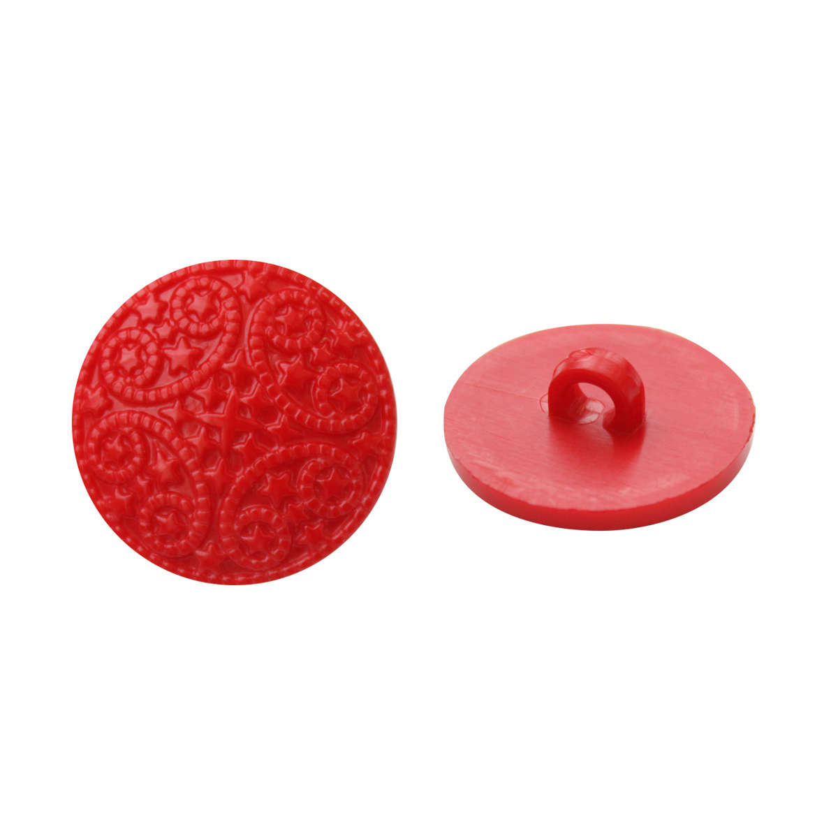 Костюмная пластиковая пуговица на ножке 22мм. Круглые матовые фантазийные пластиковые пуговицы c цветочными мотивами, с креплением на ножке. Эти ажурные пуговицы, особенно хорошо подойдут для застежки уютной верхней одежды, жакета или кардигана. Такие пуговицы будут достойно смотреться в женственном кардигане или костюме. Может быть использована как декоративный элемент в одежде. Пуговица также может применяться в различных техниках творчества - скрапбукинг, декупаж, декорирование заготовок, изготовления картин и многое другое. Отвечает всем стандартам качества, в том числе экологическим нормам. Размер: диаметр 22мм (35L). Количество: /b> упаковка 36 шт. Цвета: в ассортименте. Производитель: Тайвань.