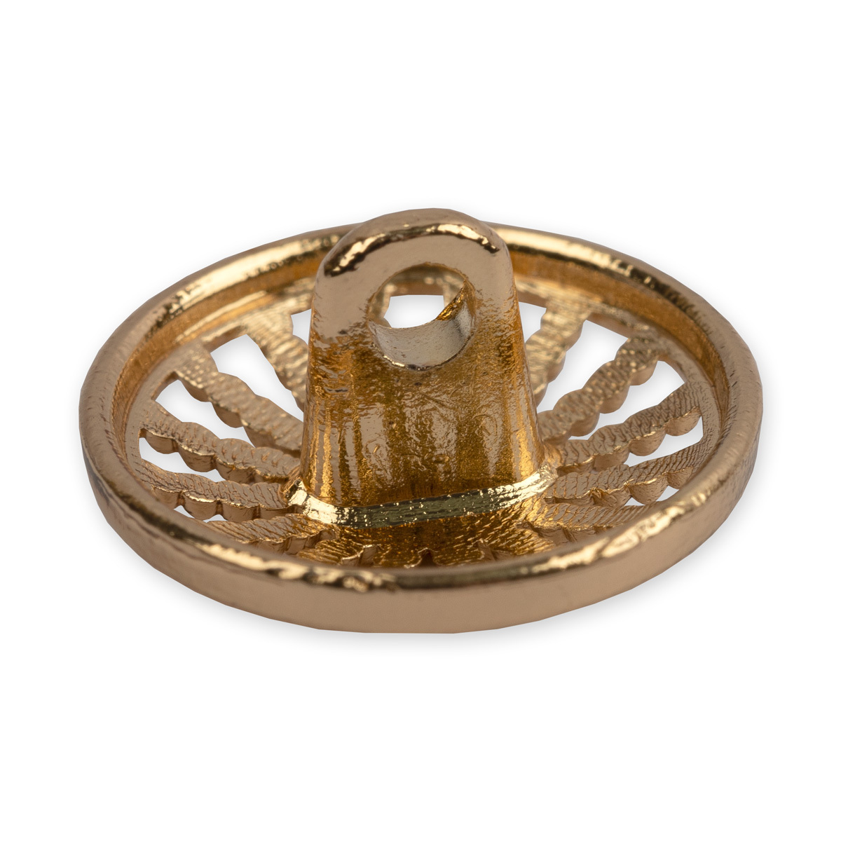 Металлические пуговицы ТМ "BLITZ", артикул: MB 0255, на ножке, круглой формы, диаметром 15 мм. С рельефным покрытием. Используются при пошиве рубашек, блузок.