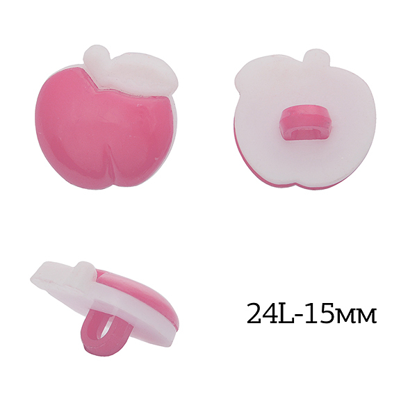 Пуговицы на ножке пластик 24L-15мм, Яблоко P-3224 цв.04 розовый, 50 шт