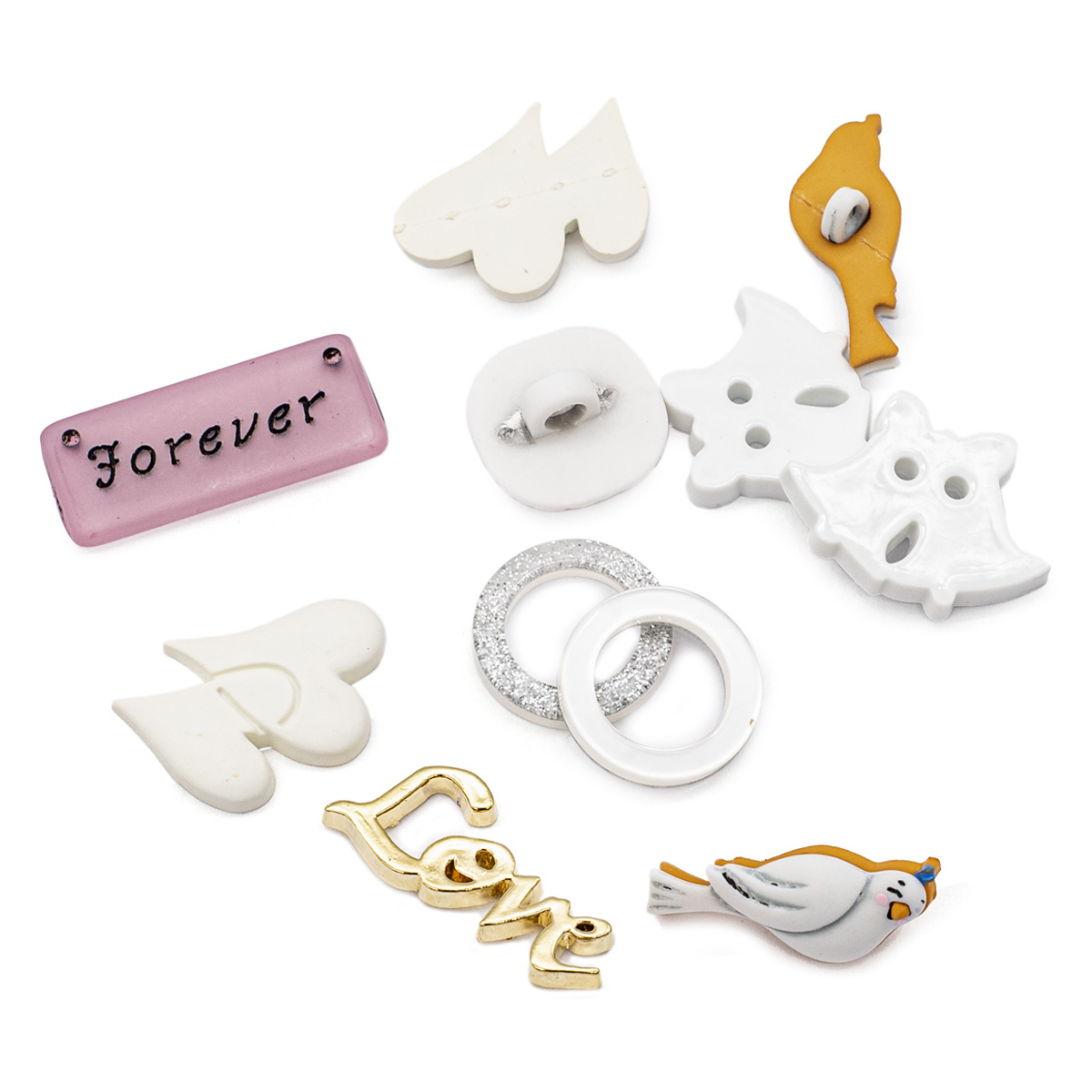 Декоративные пуговицы-фигурки – это огромное разнообразие тематик и форм, а также качественные материалы. Продукция разработана в США. Используйте пуговицы-фигурки для любых ваших творческих проектов: – украсьте детские вещи и аксессуары (сумки, головные уборы); – оформите авторскую открытку, обложку, блокнот в технике скрапбукинга; – используйте как часть композиции для декоративного панно; – декорируйте прихватку, чехол на чайник; – создайте браслет, ожерелье, брошь и другое украшение. Изготовлены из пластика. Обратите внимание: производитель оставляет за собой право вносить изменения в дизайн, количество и комплектацию изделия без предварительного уведомления. Количество: 11 штук.