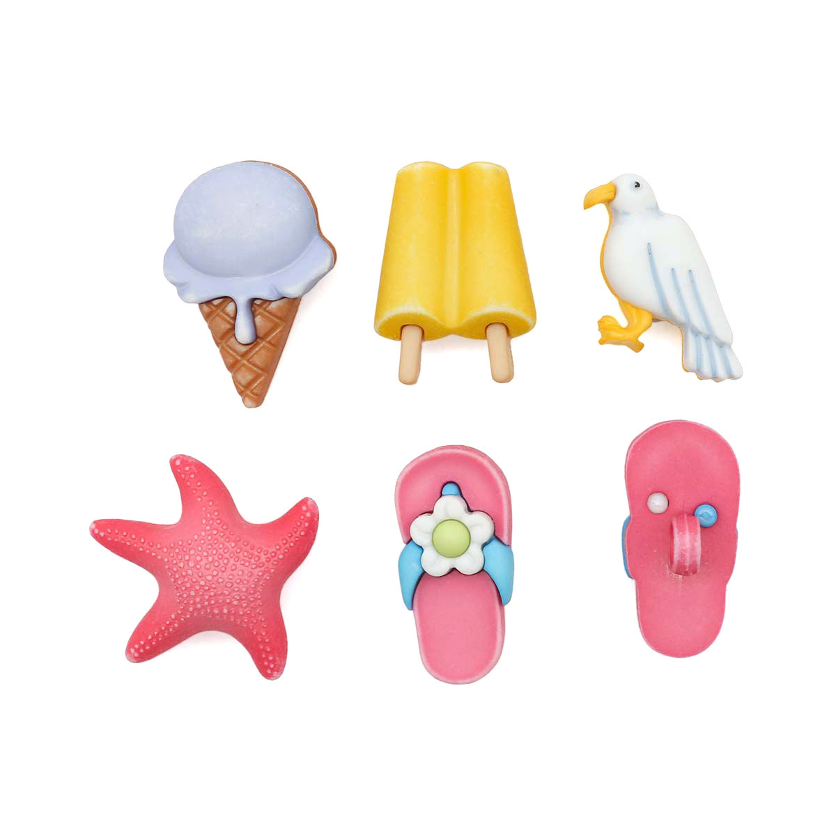Декоративные пуговицы-фигурки – это огромное разнообразие тематик и форм, а также качественные материалы. Продукция разработана в США. Используйте пуговицы-фигурки для любых ваших творческих проектов: – украсьте детские вещи и аксессуары (сумки, головные уборы); – оформите авторскую открытку, обложку, блокнот в технике скрапбукинга; – используйте как часть композиции для декоративного панно; – декорируйте прихватку, чехол на чайник; – создайте браслет, ожерелье, брошь и другое украшение. Изготовлены из пластика. Обратите внимание: производитель оставляет за собой право вносить изменения в дизайн, количество и комплектацию изделия без предварительного уведомления. Количество: 6 штук.