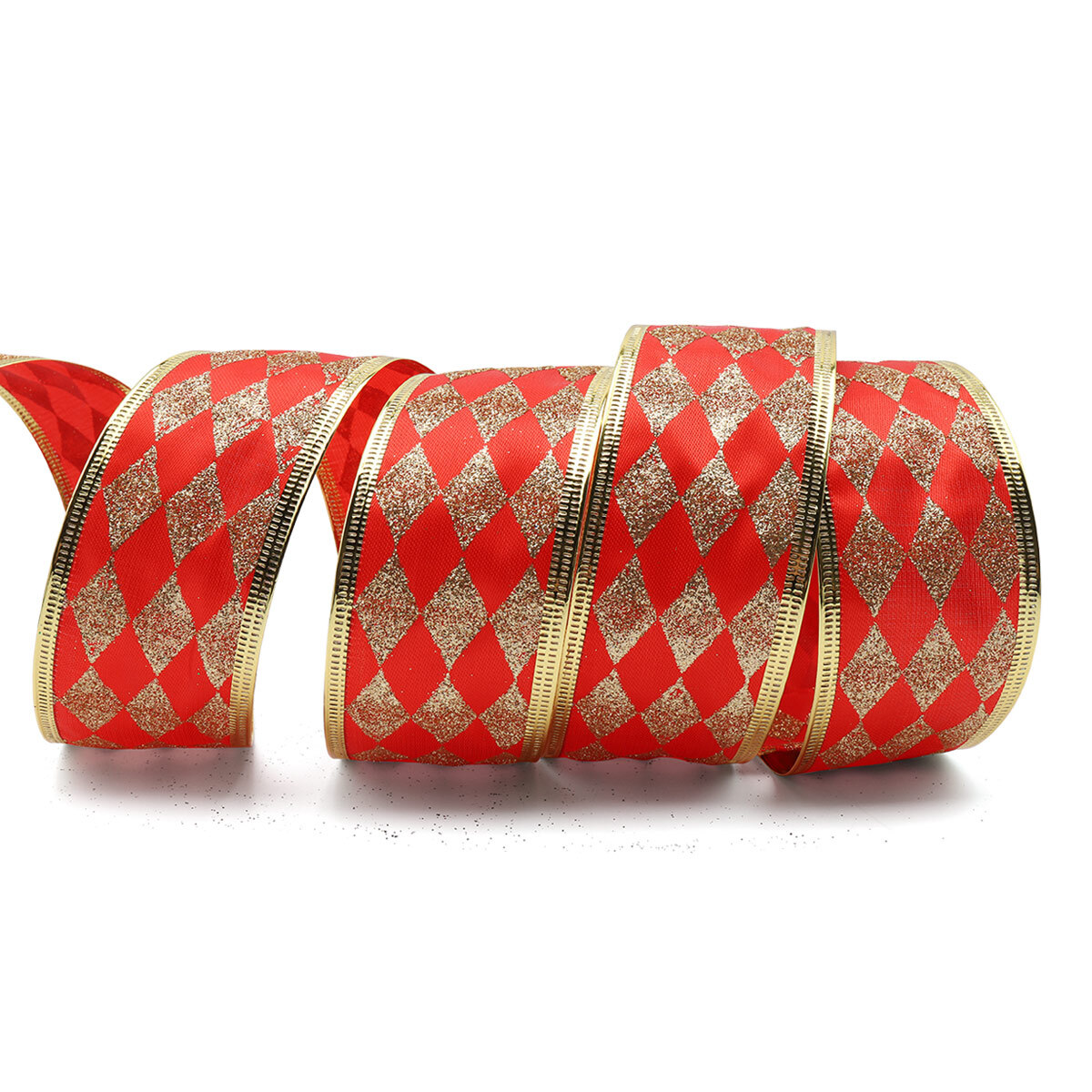 Лента упаковочная (атласная) красный/золото 5см, 10м, QR-002