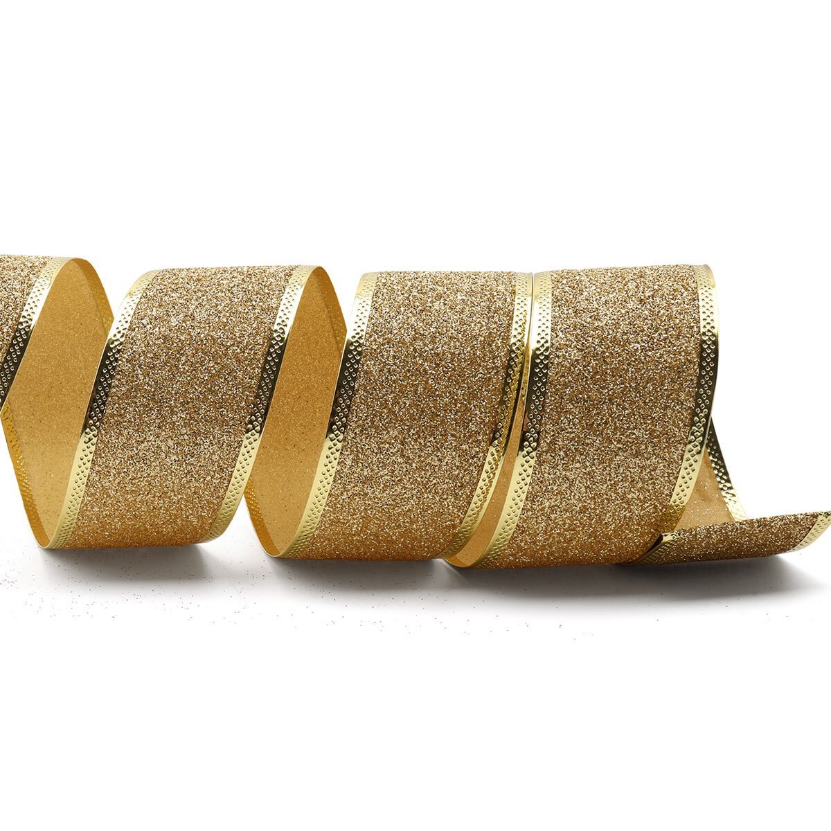 Широкая лента с глиттером удачно впишется в праздничную обстановку. Выгодно сочетается с однотонными материалами нежных приглушенных или 'природных' расцветок. Повяжите этой лентой подарочную коробку, букет живых или искусственных цветов, используйте ее для оформления интерьера, создания поделок. Лента прочная, хорошо держит форму. Материал: 100% полиэстер. Цвет: золото. Размер: ширина 5 см, длина 10 м.
