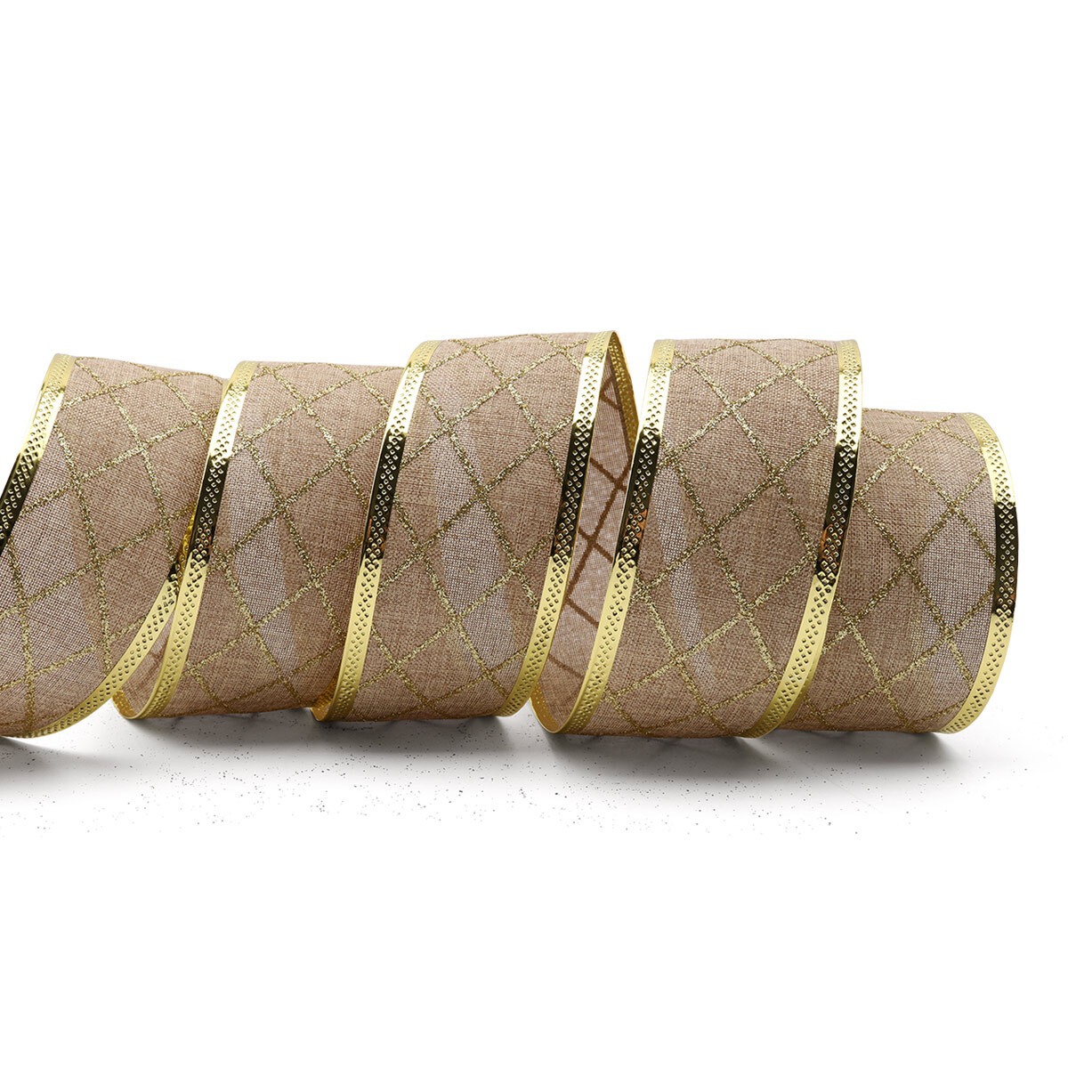 Лента упаковочная (джут) золото 5см, 10м, QR-007