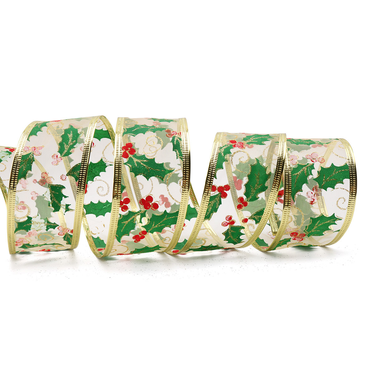 Лента упаковочная (органза) зеленый/золото 5см, 10м, QR-013