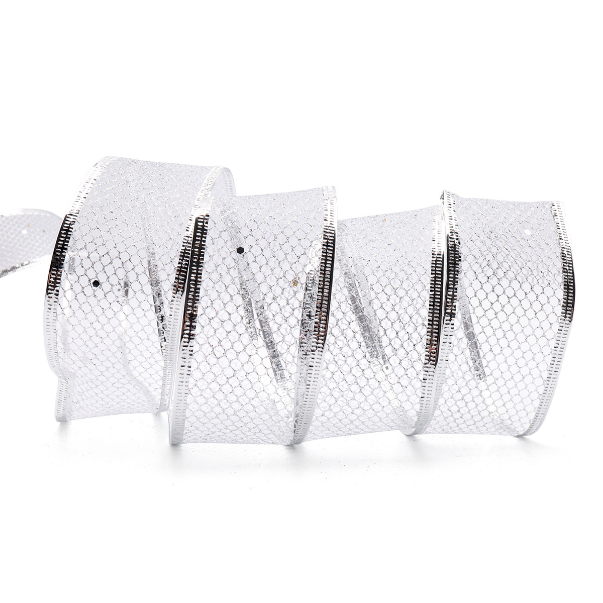 Лента упаковочная (сетка с глиттером) серебро 5см, 10м, QR-014