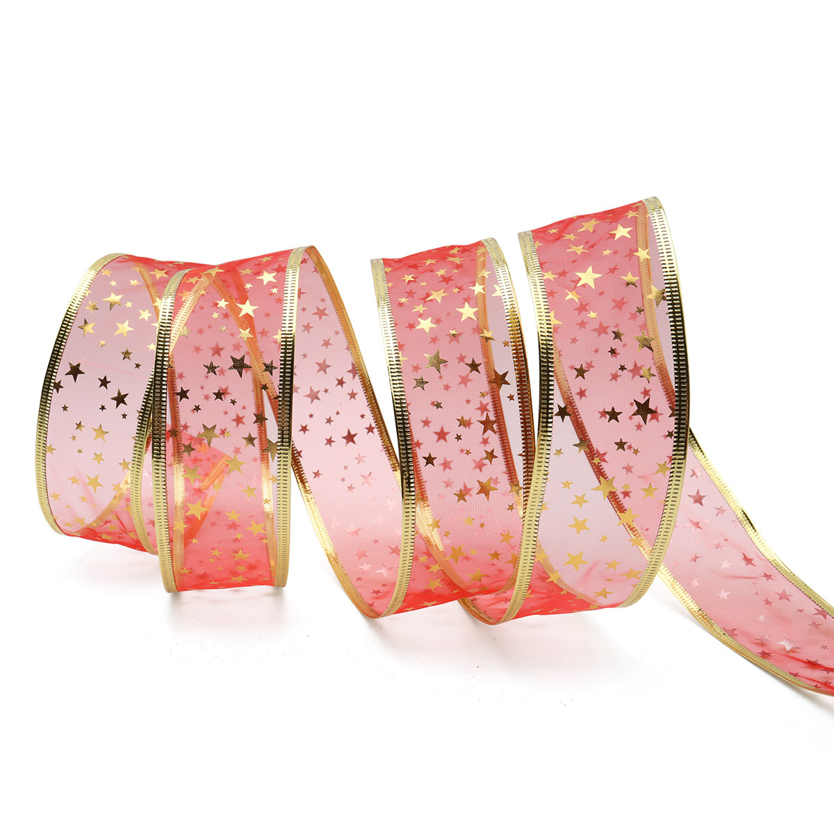 Лента упаковочная (органза) красный/золото 5см, 10м, QR-016