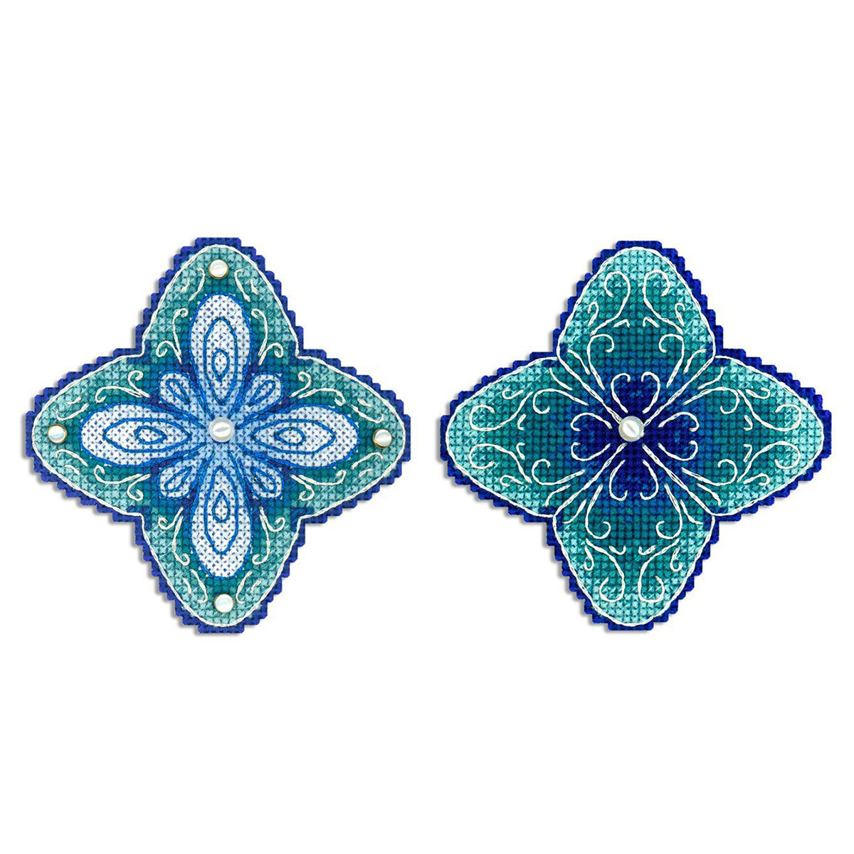 Набор для вышивания нитками МП Студия Р-1101, на пластиковой канве Морозный цветок, 9х9 см