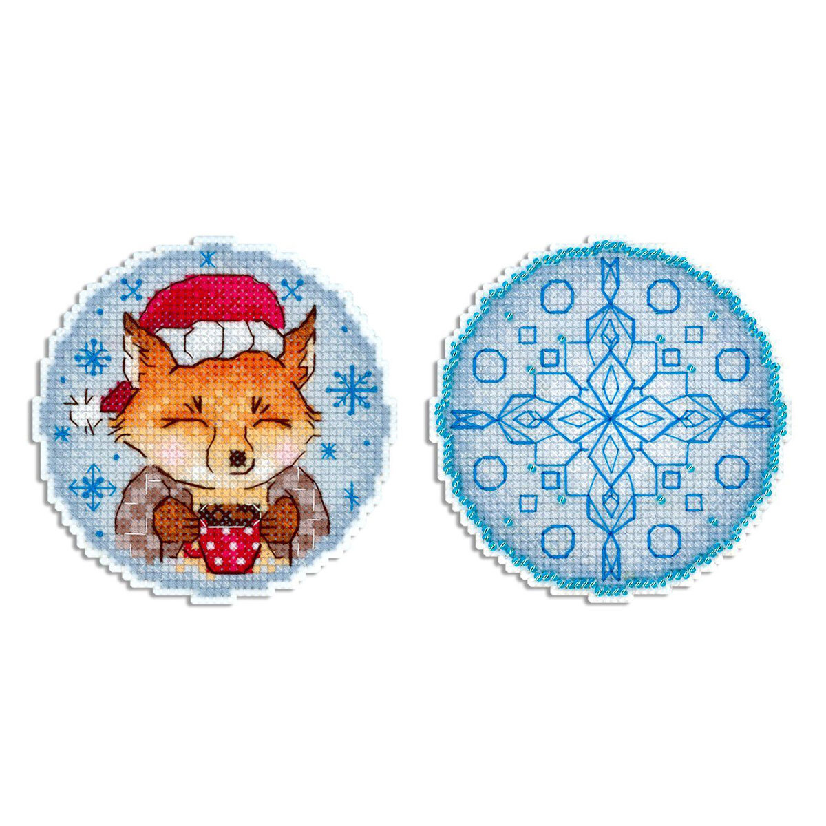 Набор для вышивания нитками МП Студия Р-1103, на пластиковой канве Новогоднее чаепитие, 9х9 см