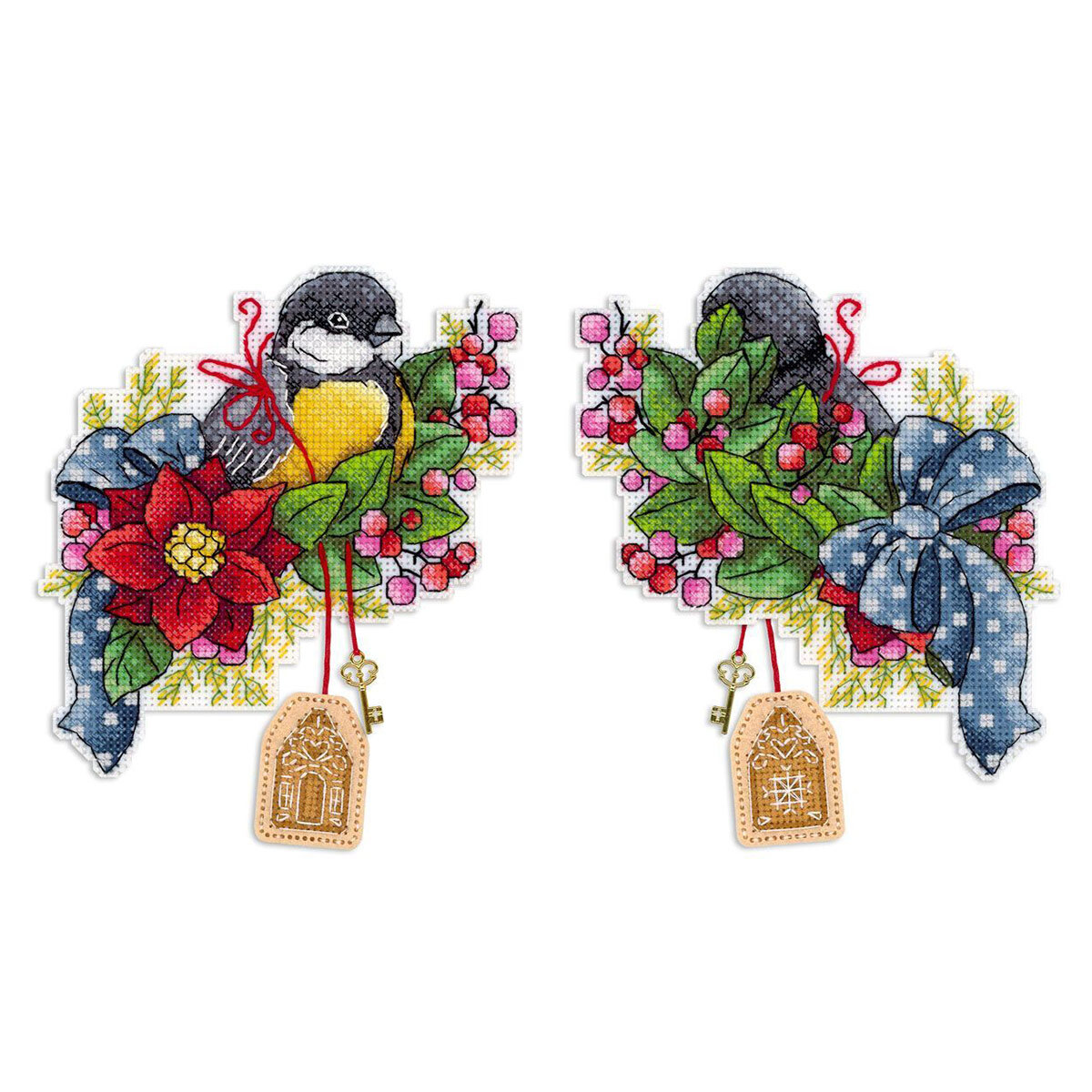 Набор для вышивания нитками МП Студия Р-1132, на пластиковой канве Праздничная синичка, 14х13 см