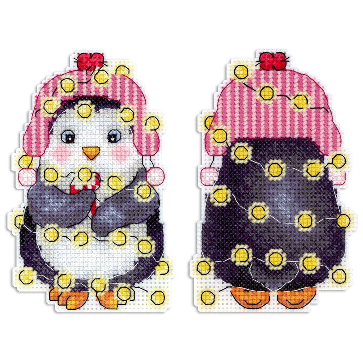 Набор для вышивания нитками МП Студия Р-1174, на пластиковой канве Новогодний пингвин, 11х7 см
