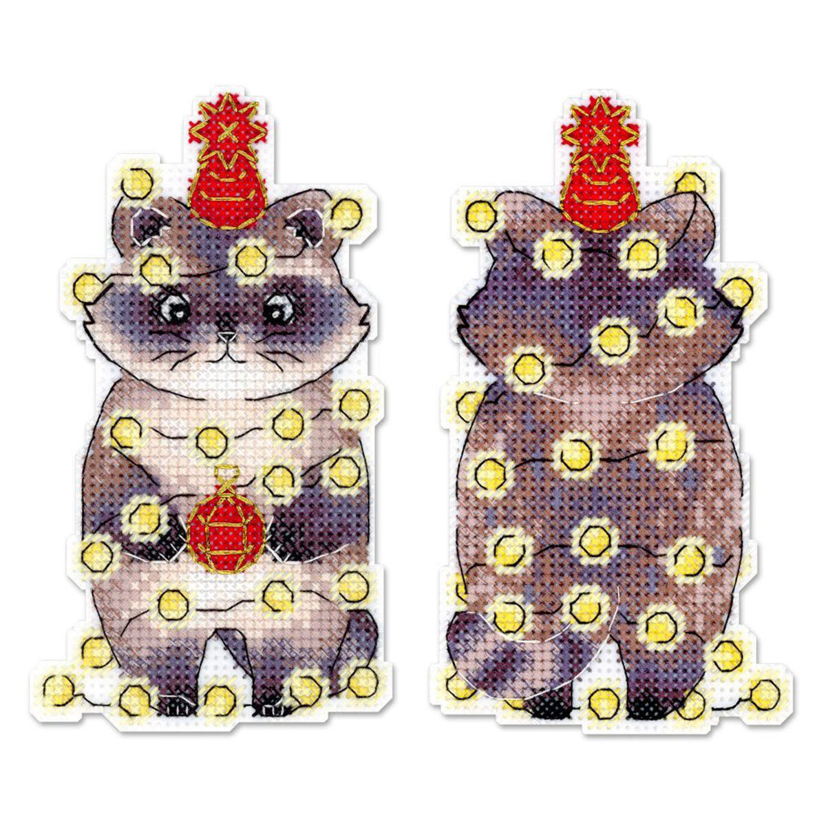 Набор для вышивания нитками МП Студия Р-1175, на пластиковой канве Новогодний енотик, 12х7 см