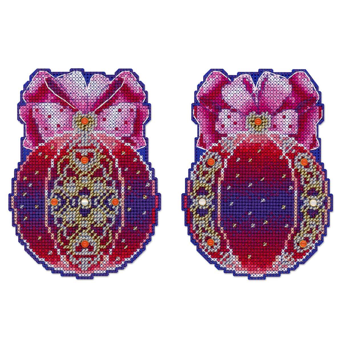 Набор для вышивания нитками МП Студия Р-1310, на пластиковой канве Елочный шар. Волшебство сердца, 12х9 см