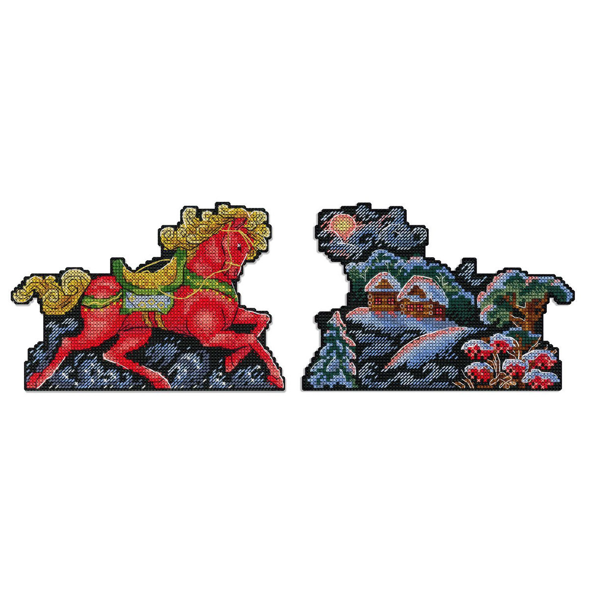Набор для вышивания нитками МП Студия Р-1326, на пластиковой канве Зимнее зарево, 11х16 см